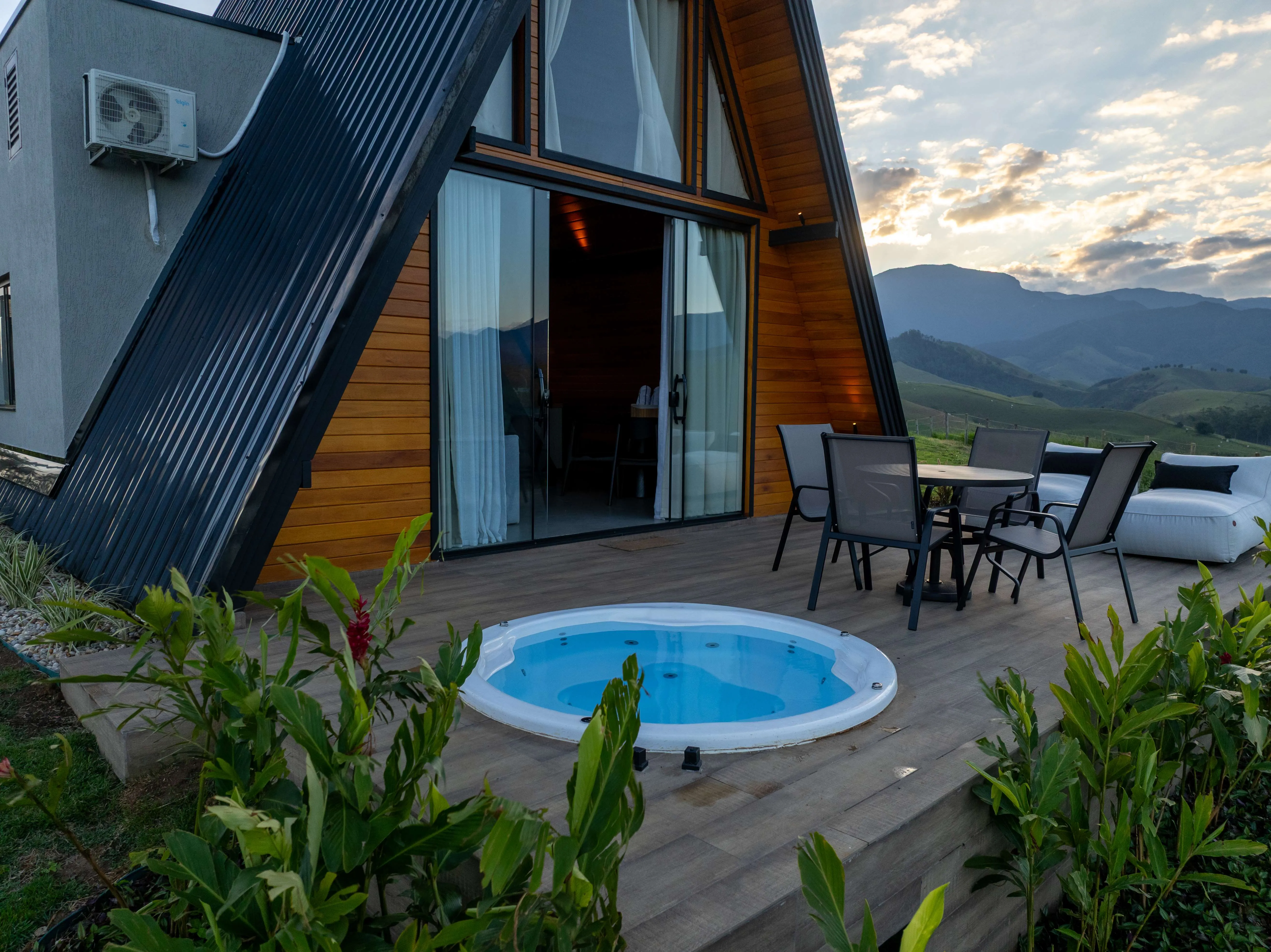 O Chalé São João está situado em um cenário encantador, com vista para as montanhas e um lago que conta com deck e quiosque, ideal para momentos de lazer ao ar livre. A estrutura inclui jacuzzi externa, área com chaises e espaço gourmet planejado para oferecer conforto e praticidade em meio à natureza.