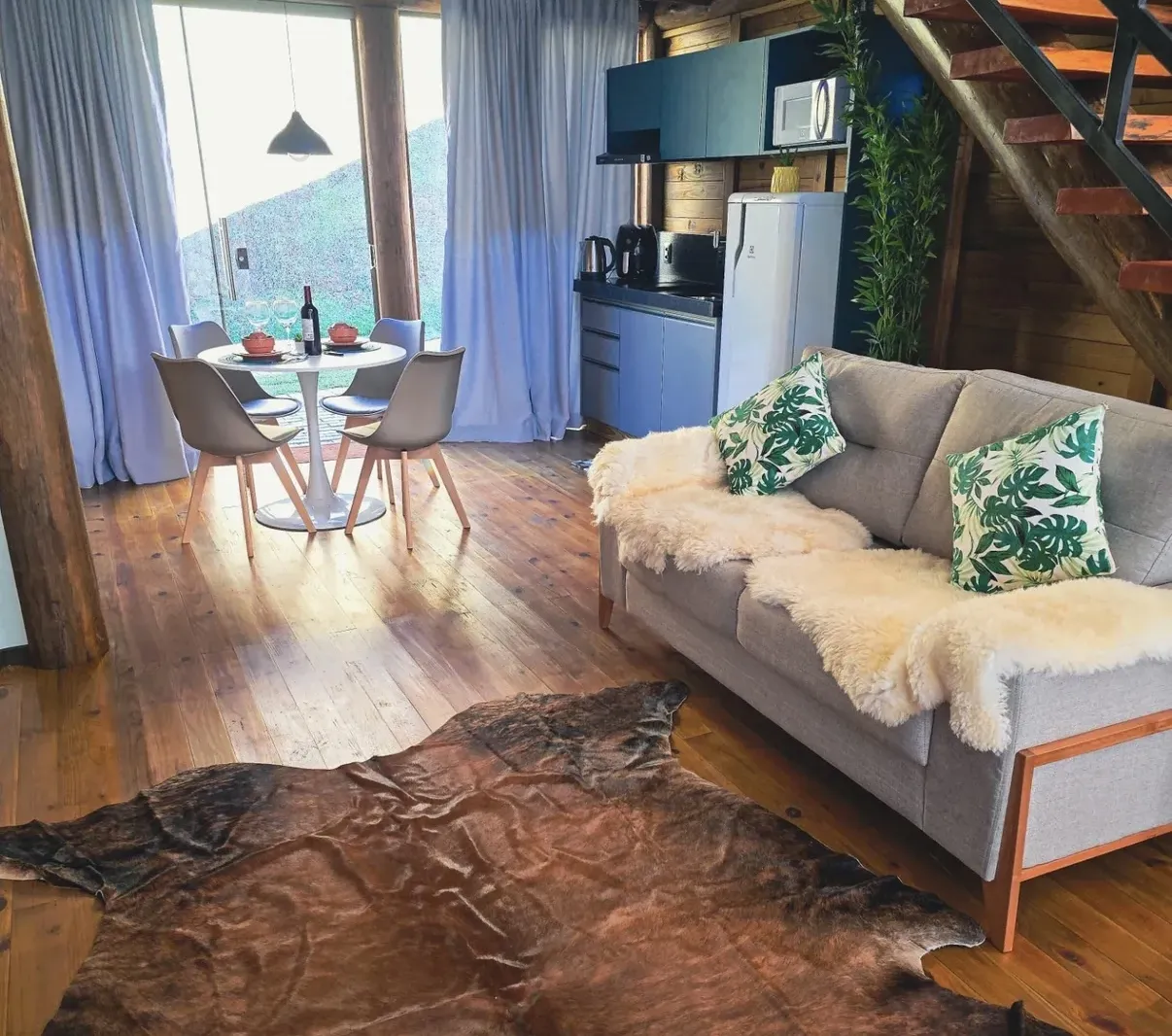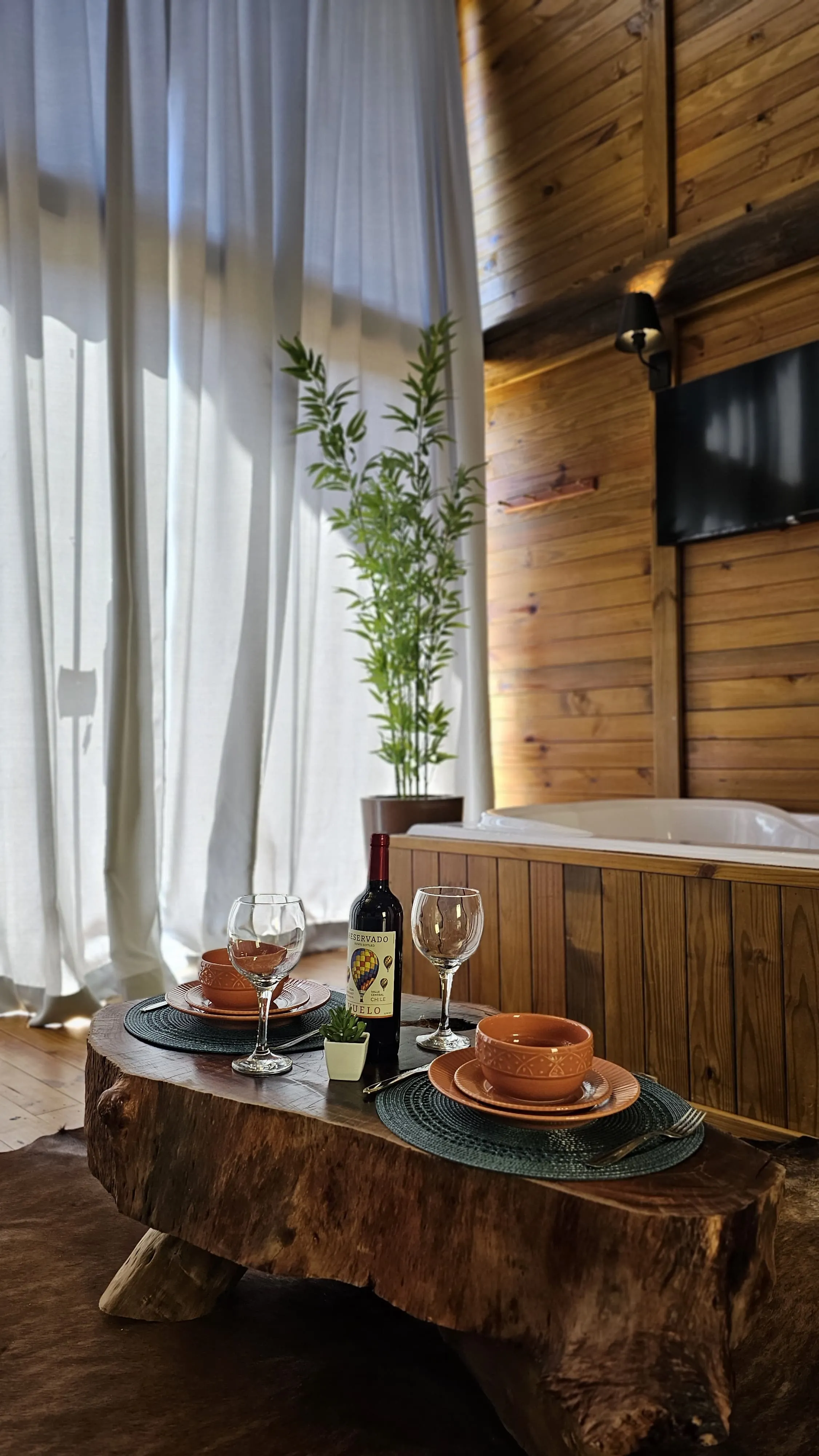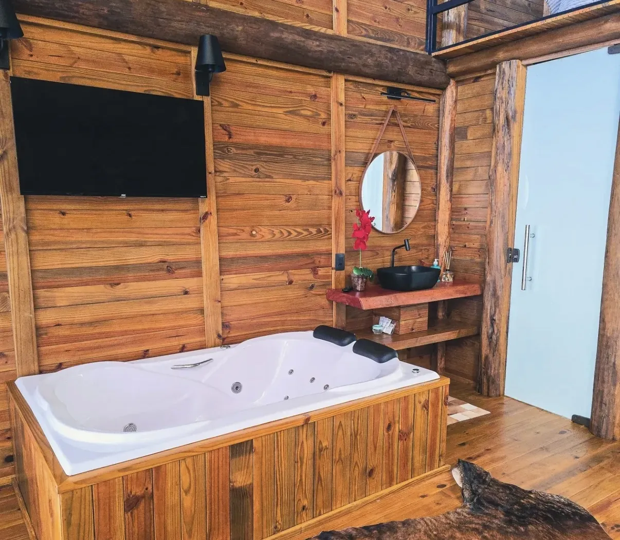 Com vista para as montanhas, os chalés estilo cabana oferecem uma estadia acolhedora, ideal para casais que valorizam privacidade, conforto e contato com a natureza. Cada unidade conta com cozinha completa com utensílio. Jacuzzi, criando o ambiente perfeito para relaxar em silêncio absoluto.