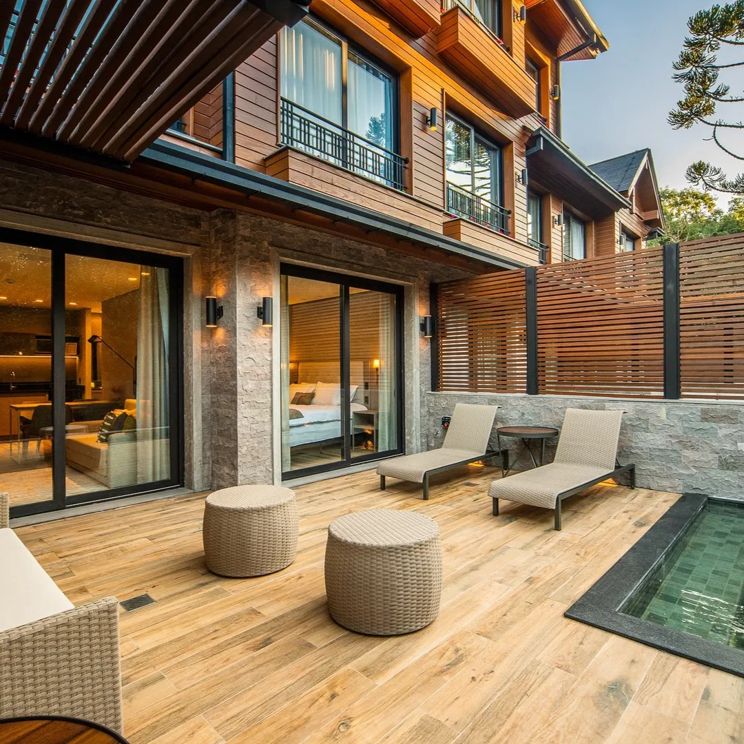 Ar condicionado Secador de cabelo TV a cabo / Smart TV Jacuzzi / Ofurô / Banheira Coberta Frigobar Lareira Máquina de Café Enxoval de Luxo (+ Roupão e Pantufa) Sauna Cozinha Estação de trabalho (mesa e cadeira) Piscina Aquecida ou climatizada Borda Infinita Coberta