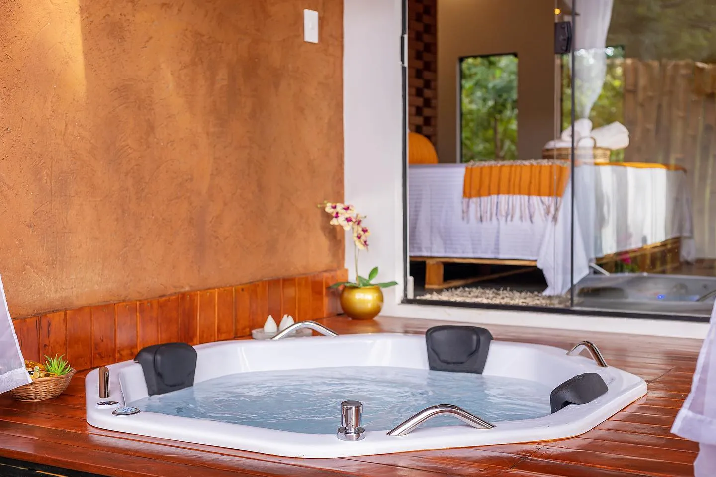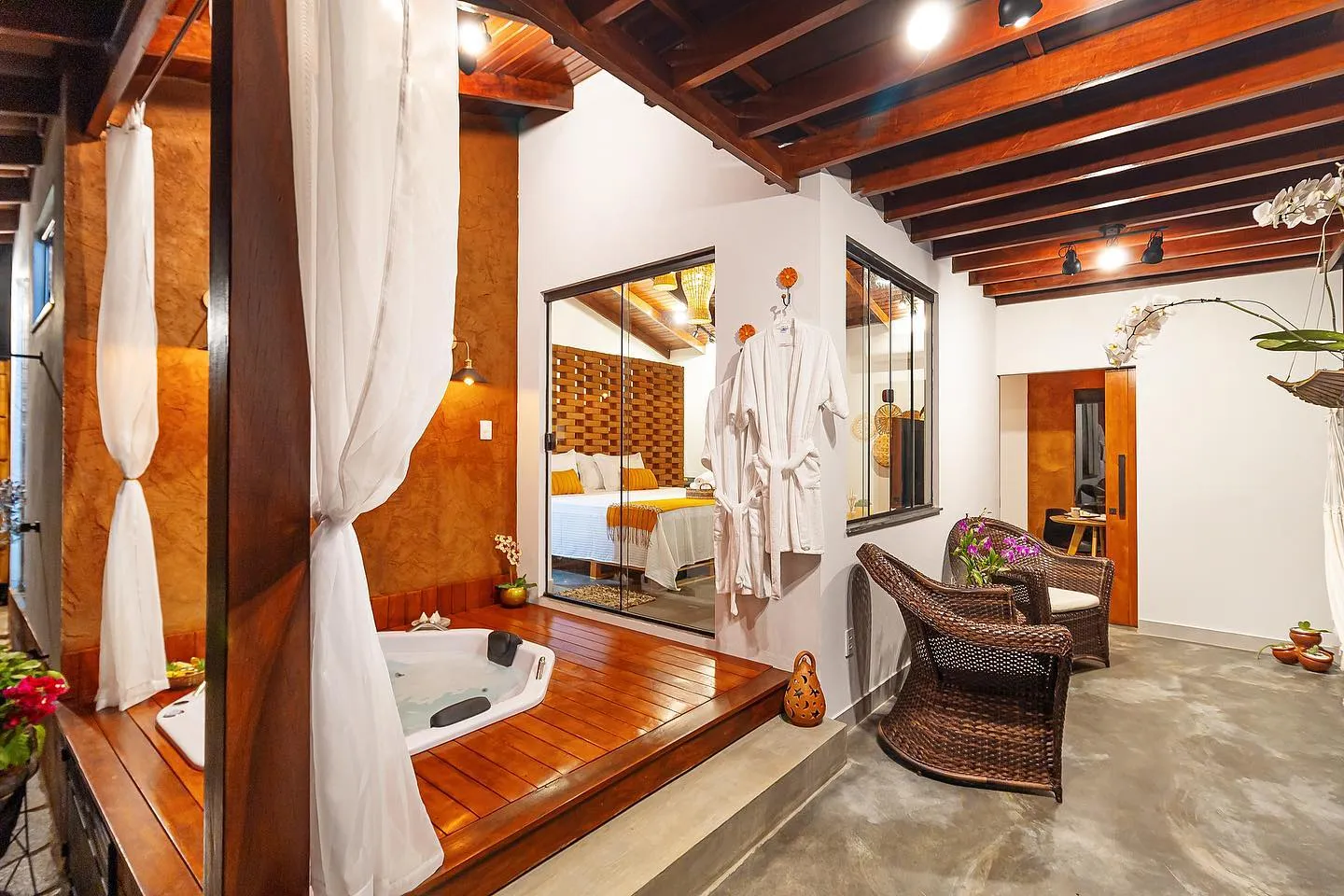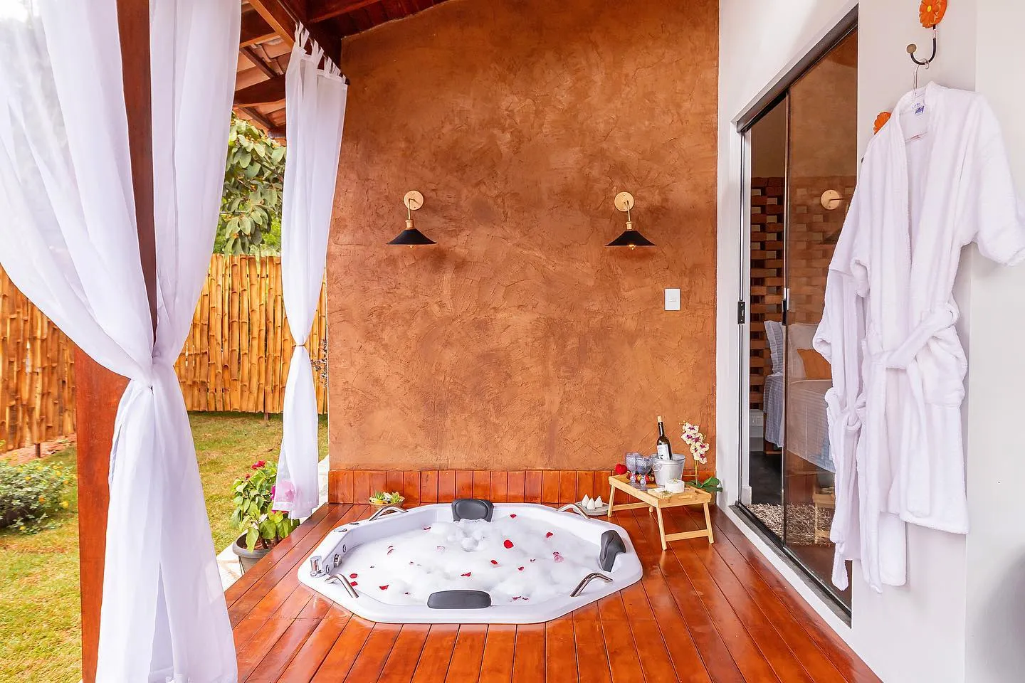 Ambos os bangalôs contam com café da manhã (autosserviço) e também com o cardápio experiência! Possuem inúmeras vivências, que podem ser negociadas à parte pelo hóspede durante a reserva, desde datas comemorativas até passeios de balão. Localizados a 10km de Pirenópolis-GO, os Bangalôs são um espaço repleto de charme e aconchego destinado para casais.