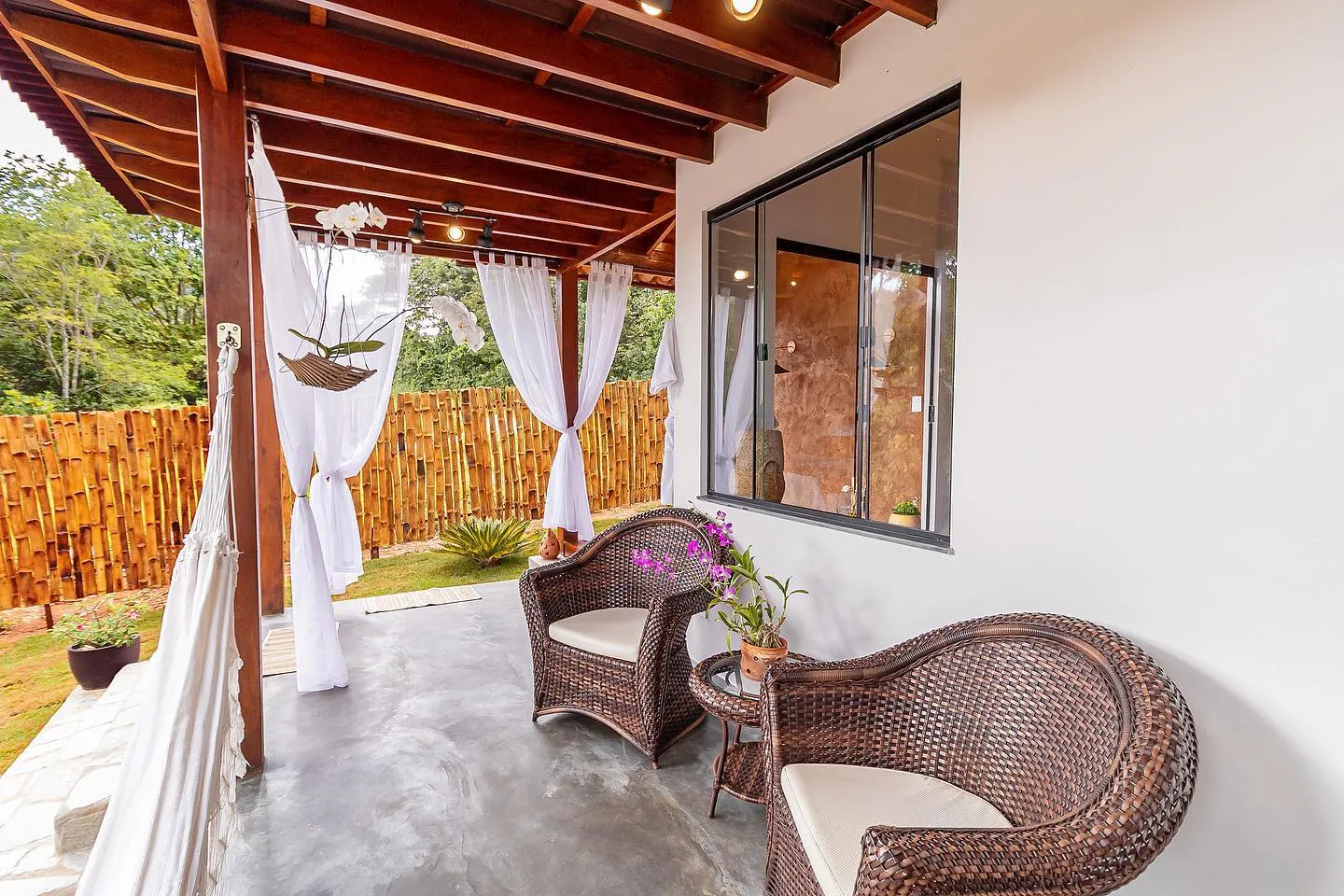 Este lugar único tem um estilo próprio. O Bangalô da Lua é o local ideal para vivenciar momentos incríveis em casal. A cabana traz consigo tranquilidade e um ambiente aconchegante em meio à natureza. Possui ar condicionado, cozinha completa, área gourmet e uma passagem linda para desfrutar na banheira de hidromassagem.