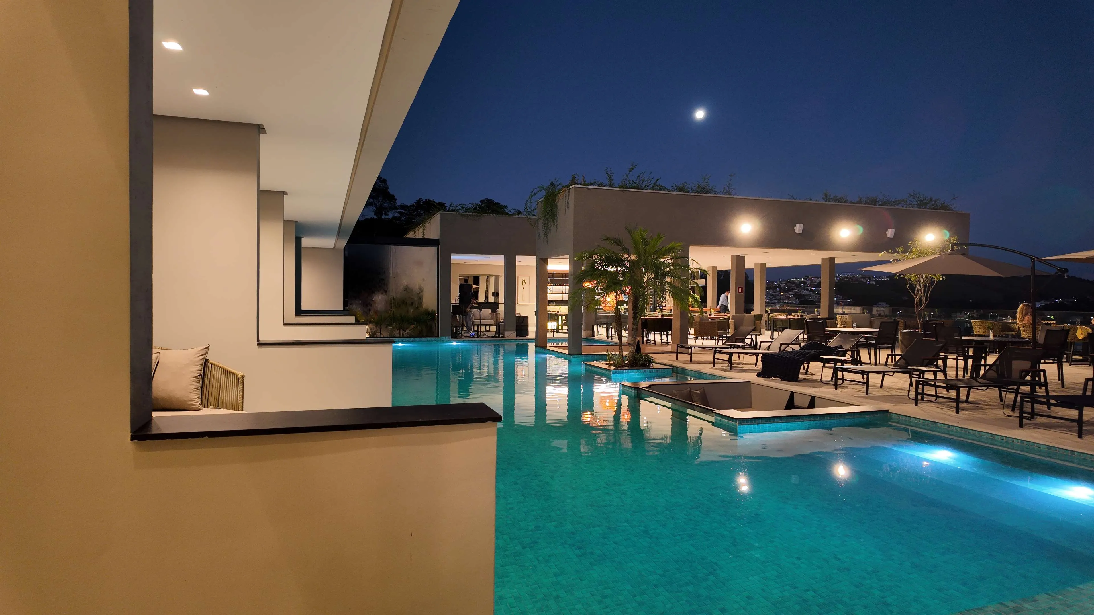 A hospedagem proporciona área de lazer completa, com piscinas integradas à paisagem, hidromassagem, sauna panorâmica, spa, trilha ecológica, academia, restaurante e bar molhado, além de espaços externos com lareira e lounge para momentos de descanso. O design elegante, a gastronomia assinada por chef renomado e o atendimento exclusivo transformam cada estadia em uma vivência memorável, ideal para quem busca requinte, bem-estar e experiências que permanecem na memória.