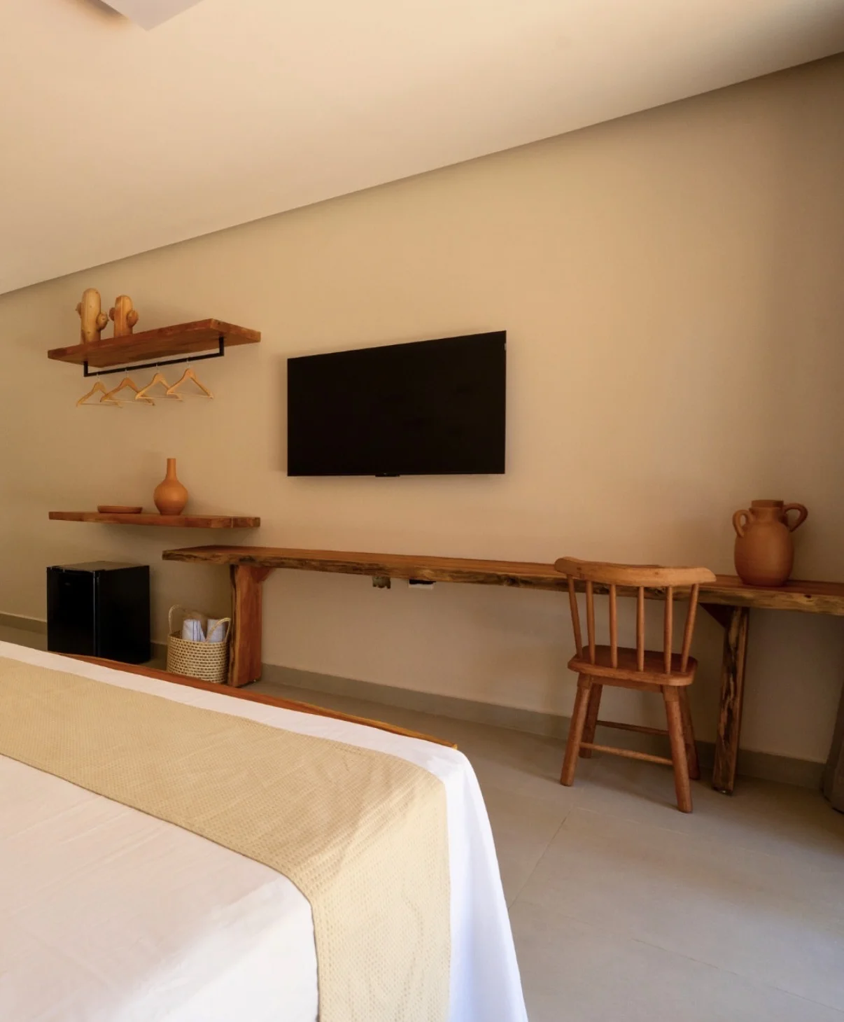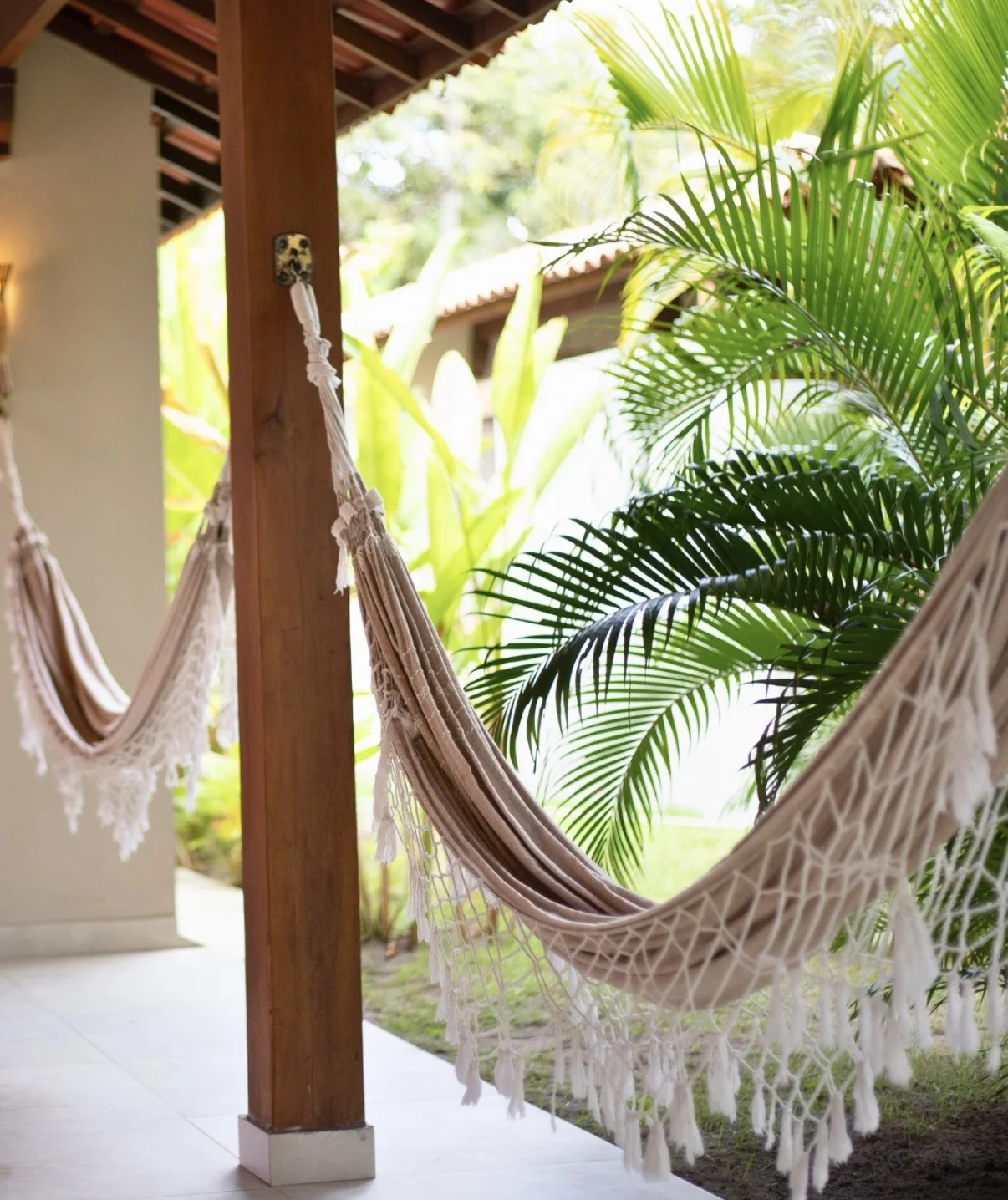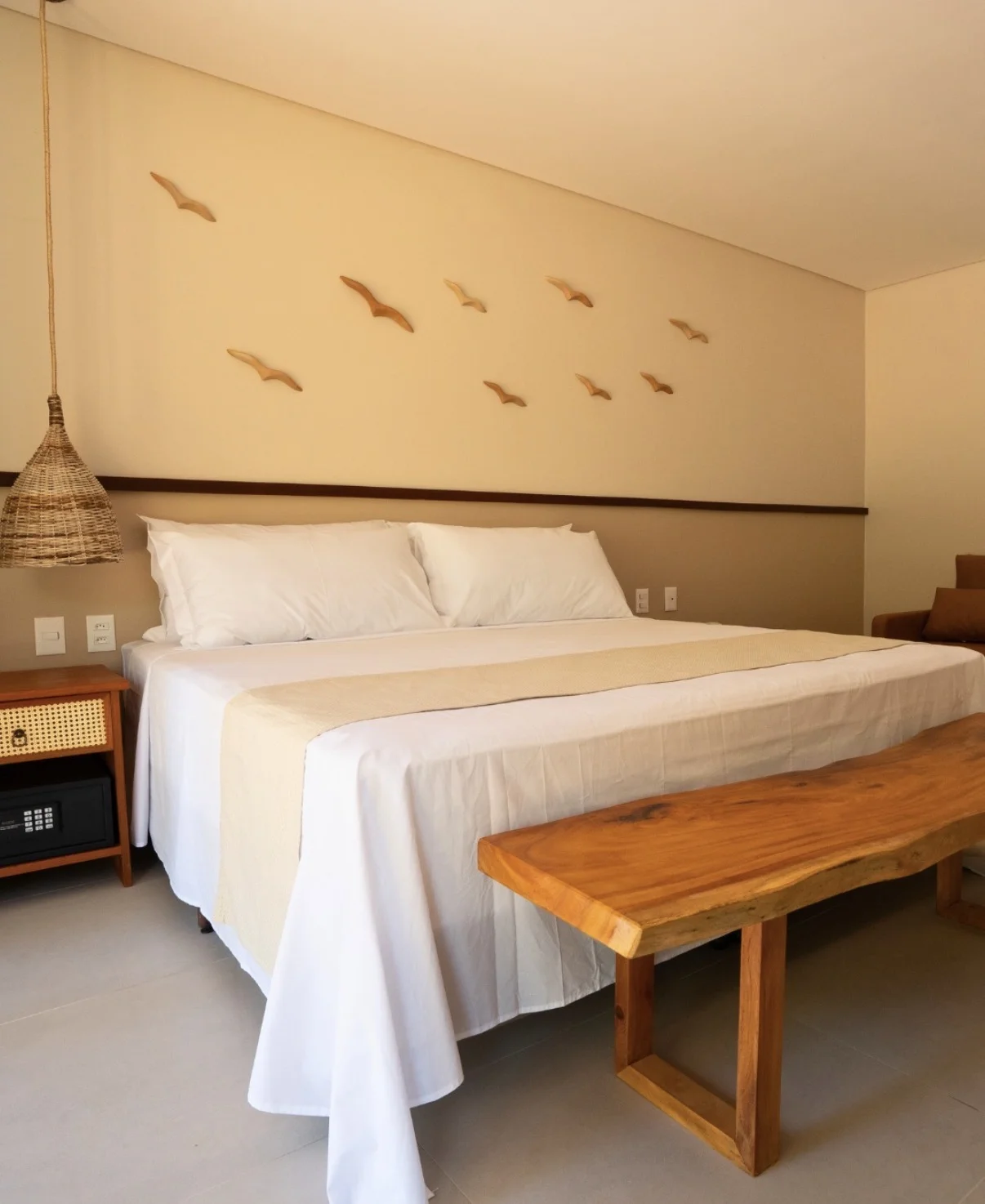 De frente para o jardim, os bangalôs são totalmente equipados para que os hóspedes possam desfrutar dos ambientes se sentindo em casa. Todas as acomodações dispõem de churrasqueira e garagem privativa, varanda com rede, chuveirão, banheiro com ducha quente, quarto, suíte com cama queen, TV, Wi-Fi, ar-condicionado split. O interior é mobiliado e a cozinha completa equipada com eletrodomésticos e utensílios.