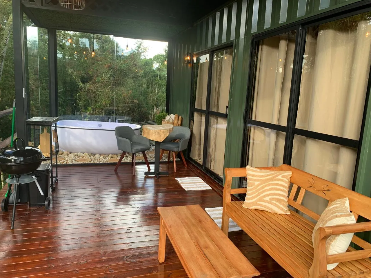 Feche os olhos por um momento e imagine-se em uma cabana aconchegante em Campos do Jordão. O cheiro da madeira perfumada, o calor suave do fogareiro e a vista espetacular da natureza criam um refúgio perfeito para relaxar. O som dos pássaros ao amanhecer e o toque suave do vento frio no rosto fazem você sentir a verdadeira paz. Viva essa experiência única e transforme seu final de semana em um momento inesquecível!