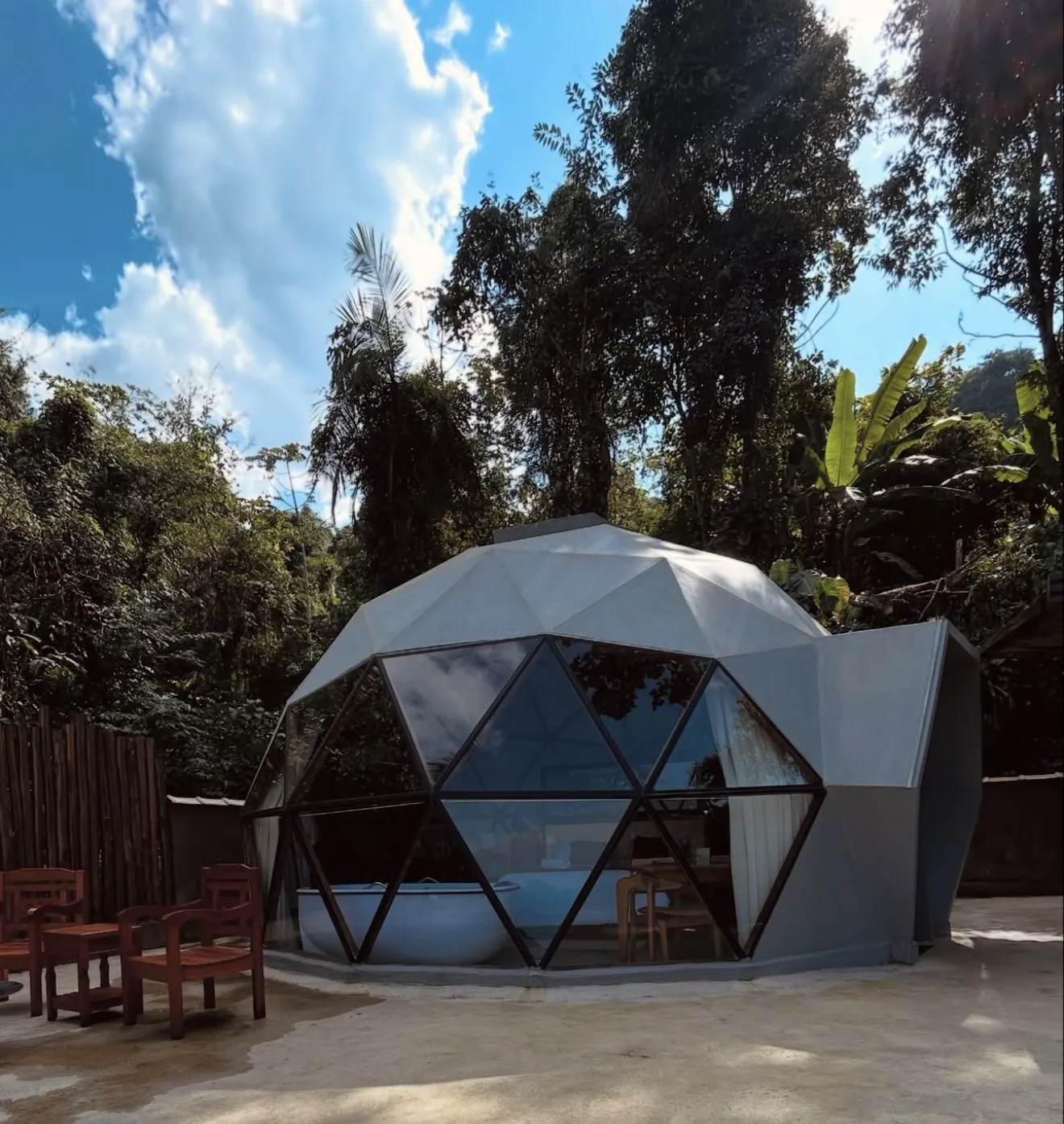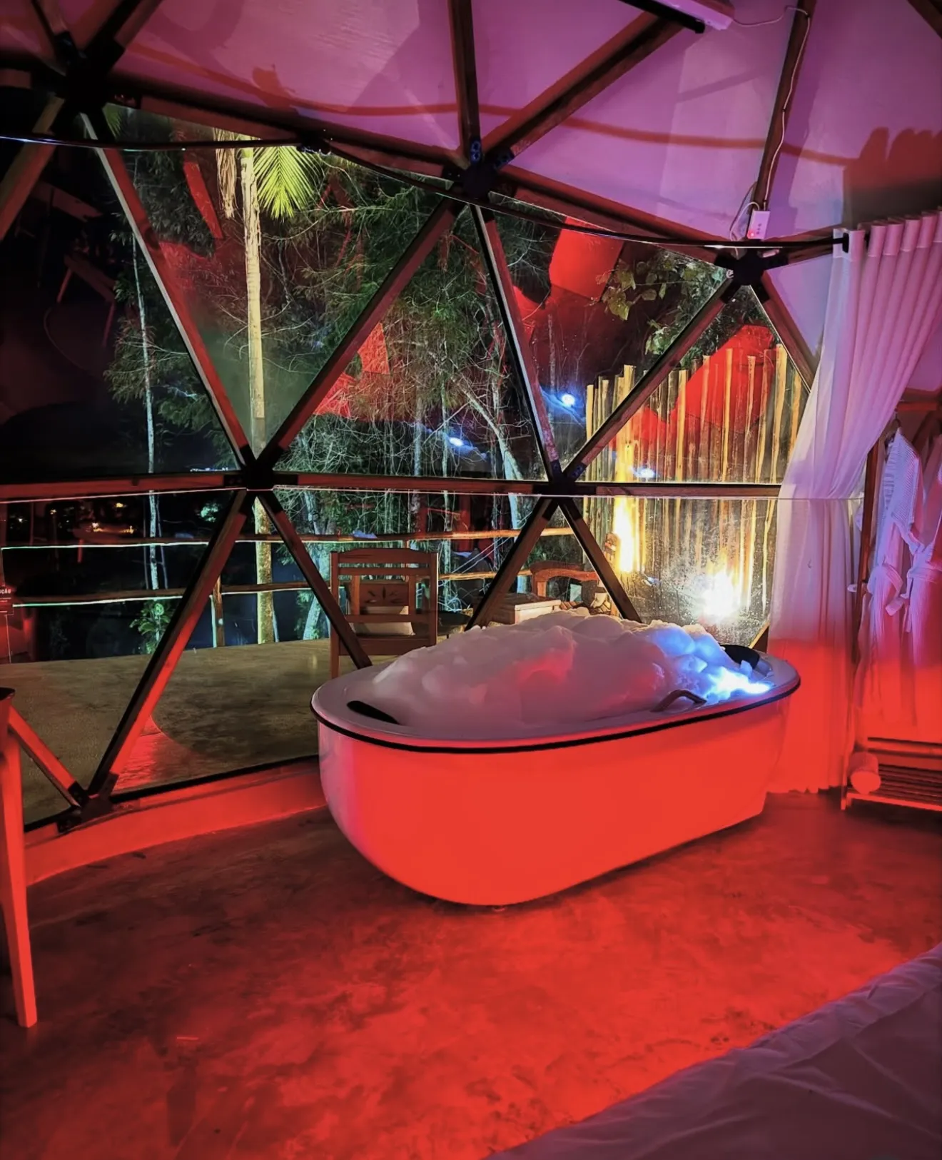 O Domo Aysú é um refúgio pensado com carinho em cada detalhe. Ideal para casais que buscam se desconectar do mundo e viverem dias de paz, descanso, romance e conexão com a natureza. Possuímos duas cozinhas completamente equipadas, fogo de chão, churrasqueira, banheira de hidromassagem com vista mar, Wi-Fi, telão e rede suspensa. Localização segura há apenas 15 minutos do centro histórico de Paraty - RJ