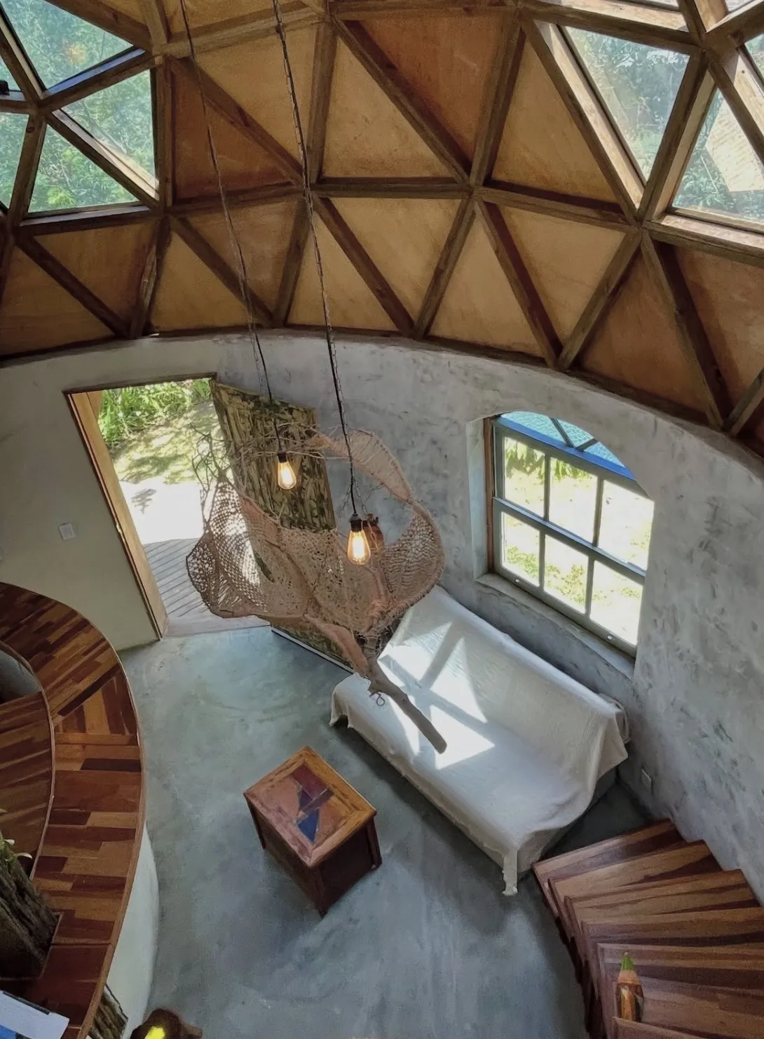 O Domo Ibiraquera é um refúgio geodésico localizado em Santa Catarina, ideal para quem busca uma experiência arquitetônica singular em meio à natureza. Com estrutura em formato esférico, o espaço combina design contemporâneo e integração com o ambiente, criando atmosfera imersiva, acolhedora e visualmente marcante. A proposta valoriza privacidade, conforto e conexão com o entorno natural.