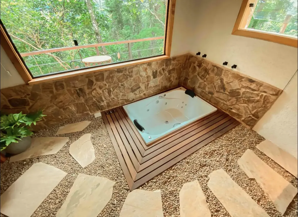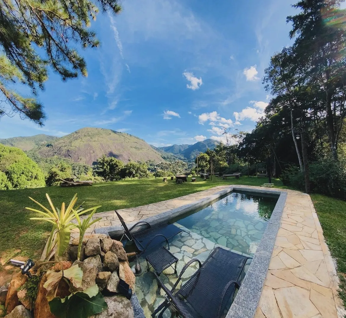 A Encanto oferece o ambiente perfeito para quem busca relaxamento e desconexão da rotina. Situada em meio à exuberante reserva natural de Araras, a propriedade proporciona vistas deslumbrantes da Mata Atlântica, aliando o charme da serra com a tranquilidade do local. Nas proximidades, a cachoeira da Ponte Funda, conhecida por seu formato de coração e sua imponente queda d’água de 40 metros, é uma excelente opção para quem aprecia o turismo ecológico.