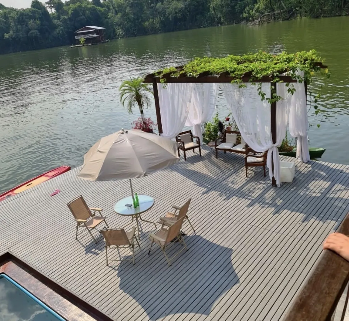 O Hotel Flutuante Ecolodge apresenta uma proposta singular, integrada à paisagem natural e marcada por uma atmosfera de serenidade e exclusividade. Sua estrutura sobre as águas cria uma experiência visual e sensorial única, onde o ritmo do ambiente conduz a uma vivência autêntica, silenciosa e profundamente acolhedora, com estética cuidadosamente harmonizada ao entorno.