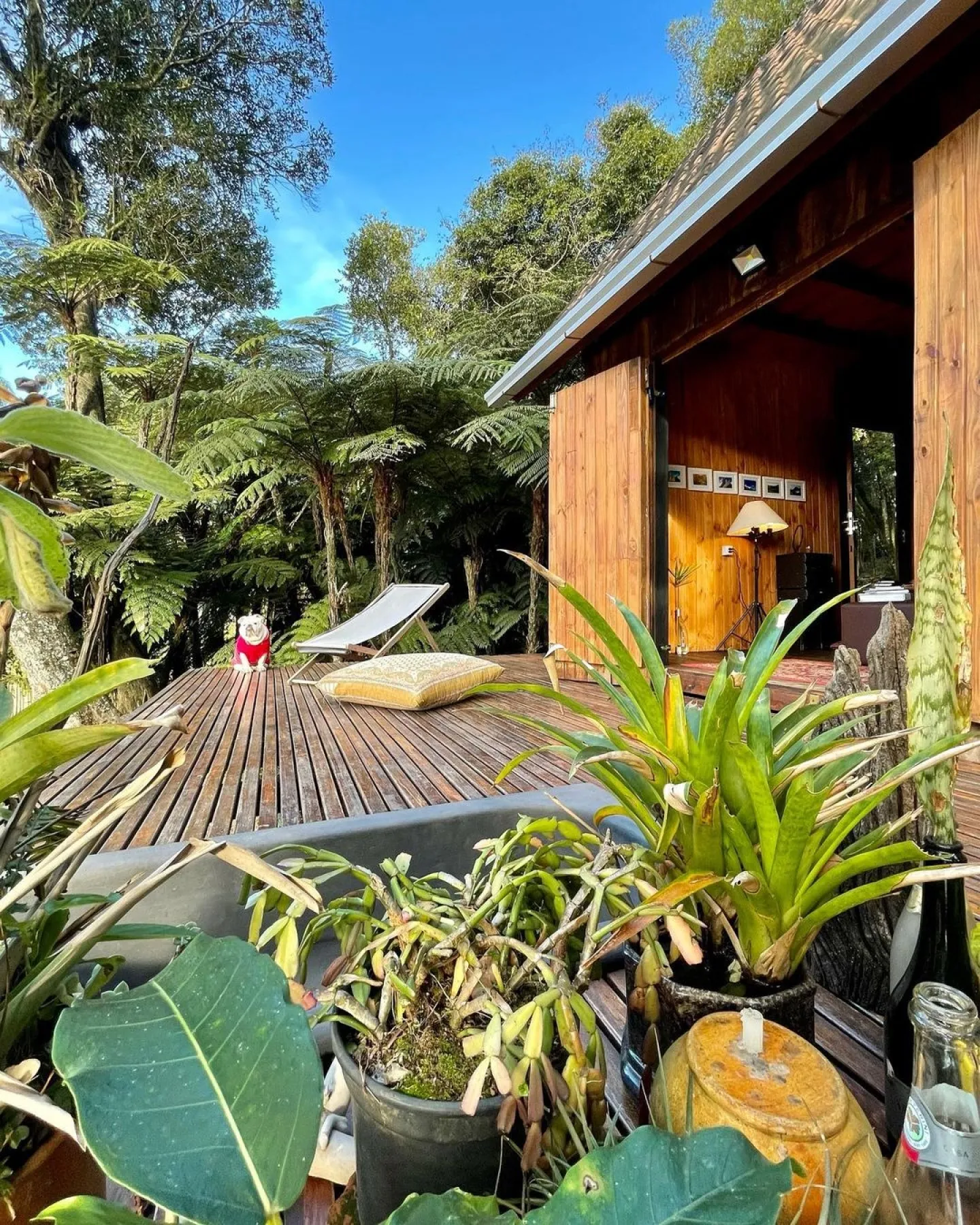 A cabana em meio à natureza para curtir e relaxar em Morro Reuter, na Serra Gaúcha, é o sítio Fox Farm Hill, um espaço perfeito para duas pessoas. Imagine-se relaxando no deck com uma taça de vinho local, aninhando-se ao lado da fogueira ou mergulhando na banheira enquanto aprecia a vista deslumbrante do lago. Localizado a 70 minutos de carro de Porto Alegre e a 40 minutos de Gramado.