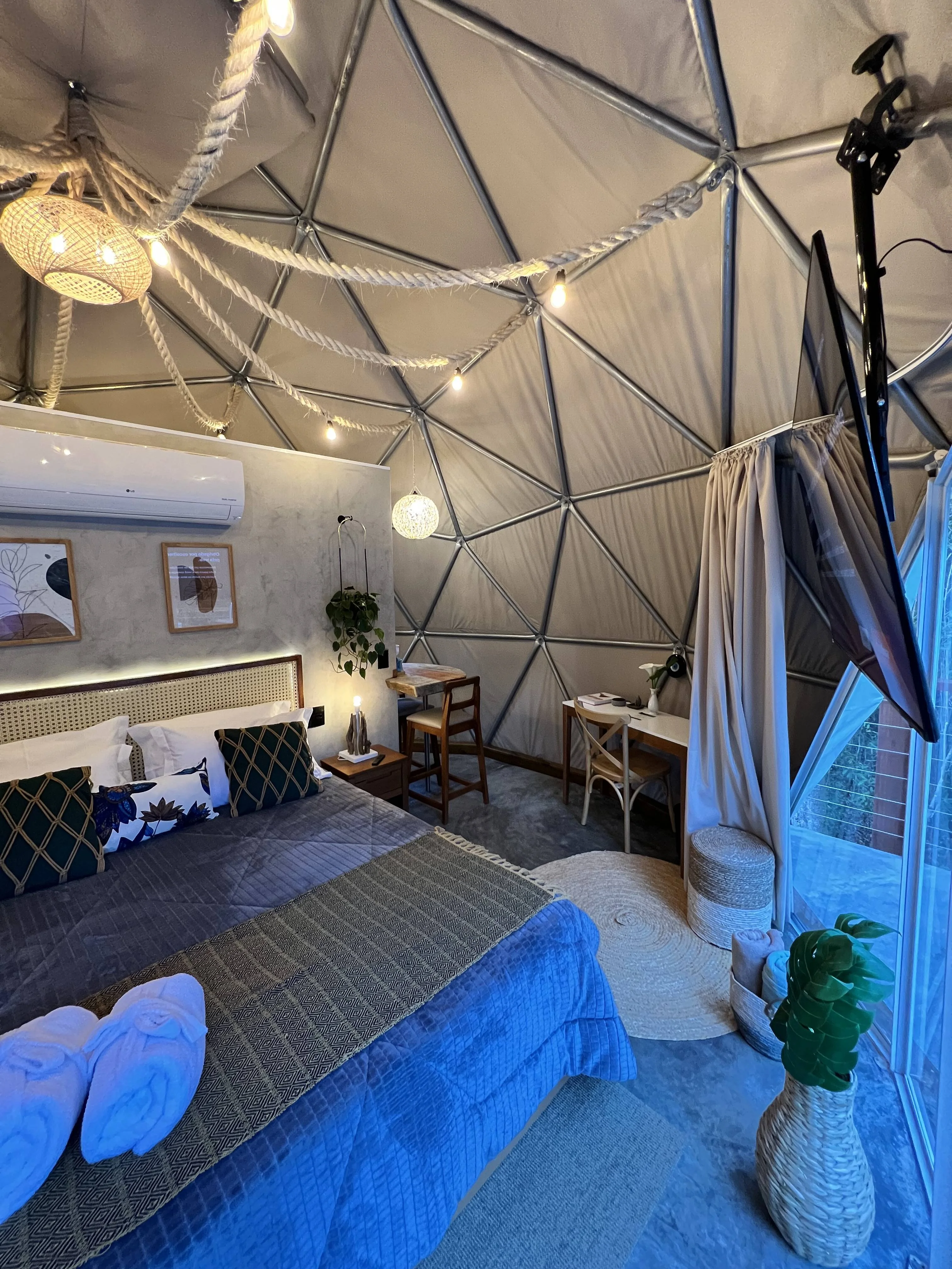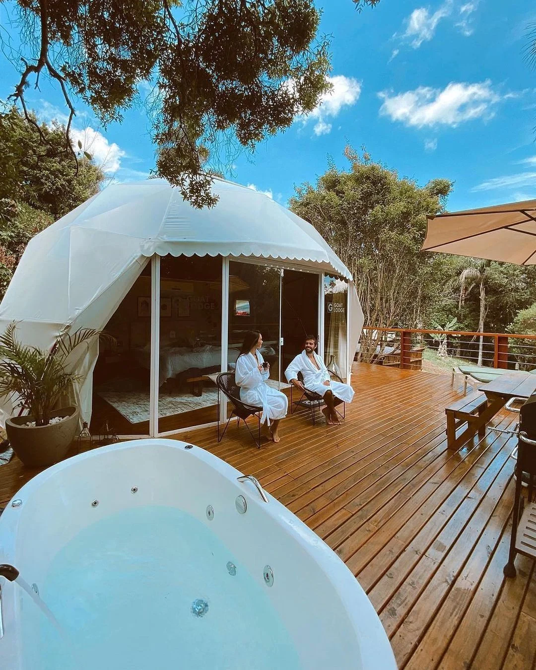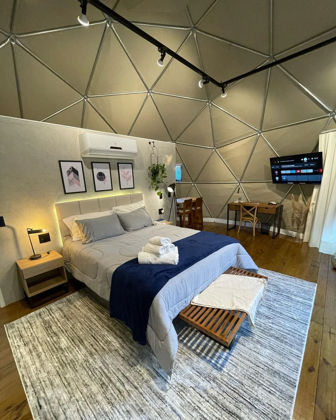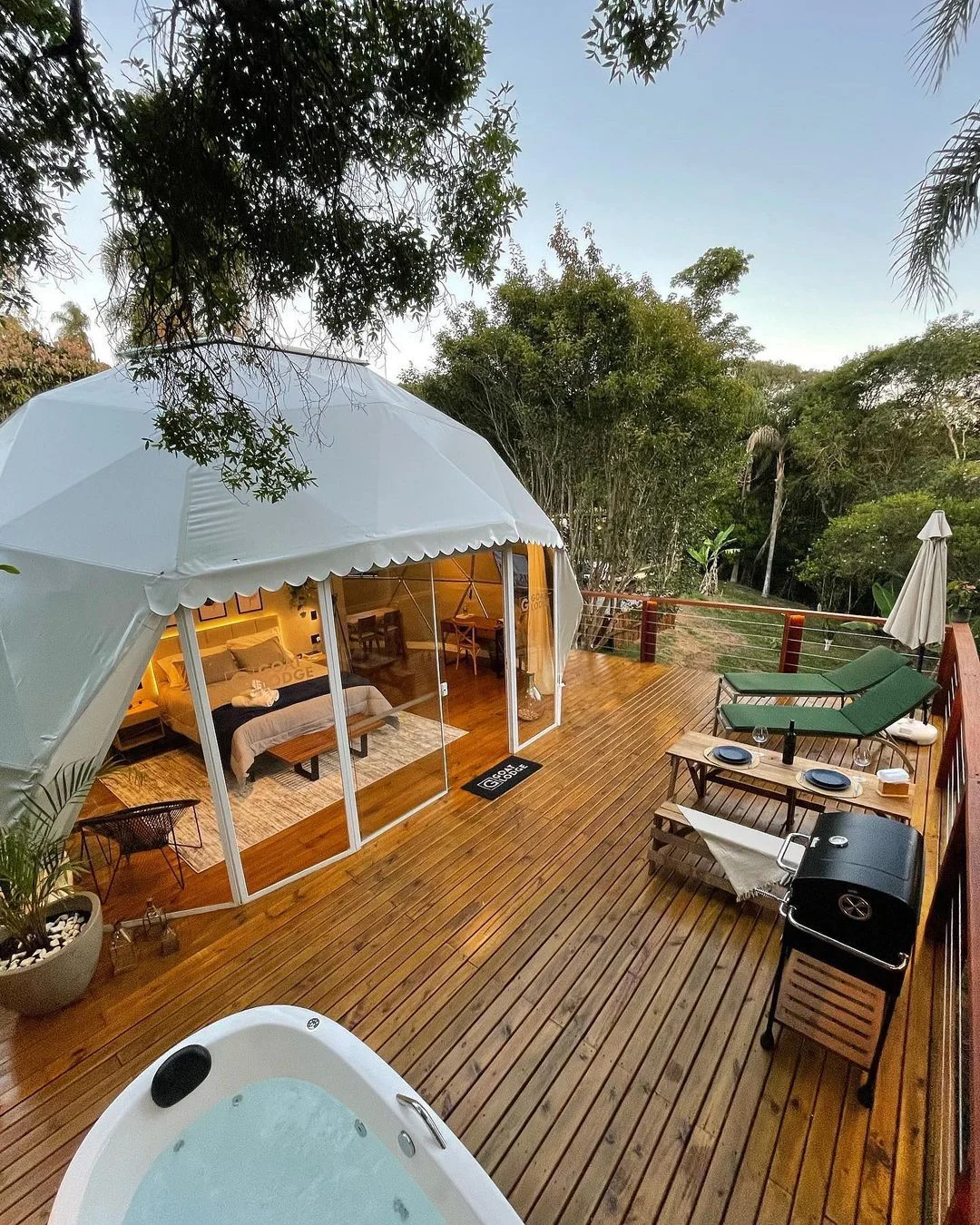 O LOFT São José proporciona uma experiência luxuosa e privativa em meio à natureza, oferecendo conforto e exclusividade em um ambiente único. Com 40 m² e totalmente envidraçado, o loft está localizado em uma área cercada, com entrada segura através de sistema digital. Construído sobre um deck de madeira rodeado pela mata, o local inclui um lago privativo, criando um ambiente perfeito para relaxamento. O espaço conta com uma cama Queen Size com pillow top, smart TV na área externa, projetor de 100”, Amazon Alexa, som Bluetooth, além de roupas de cama e banho de qualidade. A internet de alta velocidade e o ar-condicionado quente e frio garantem o conforto em todas as estações. A lareira interna a lenha, banheira de imersão interna e o chuveiro com água quente proporcionam momentos de aconchego. A cozinha completa, com máquina de café Nespresso e máquina de gelo, oferece praticidade para quem deseja preparar suas refeições. Na área externa, o loft conta com uma banheira de hidromassagem aquecida com cromoterapia, lareira a álcool, churrasqueira a gás, sauna úmida transparente e espreguiçadeiras para aproveitar o ambiente ao máximo. O gazebo com redário, a área externa coberta com pia e mesa, e o estacionamento ao lado do loft, completam a estrutura do local. Além disso, o espaço é pet friendly, tornando-o ainda mais acolhedor para todos.