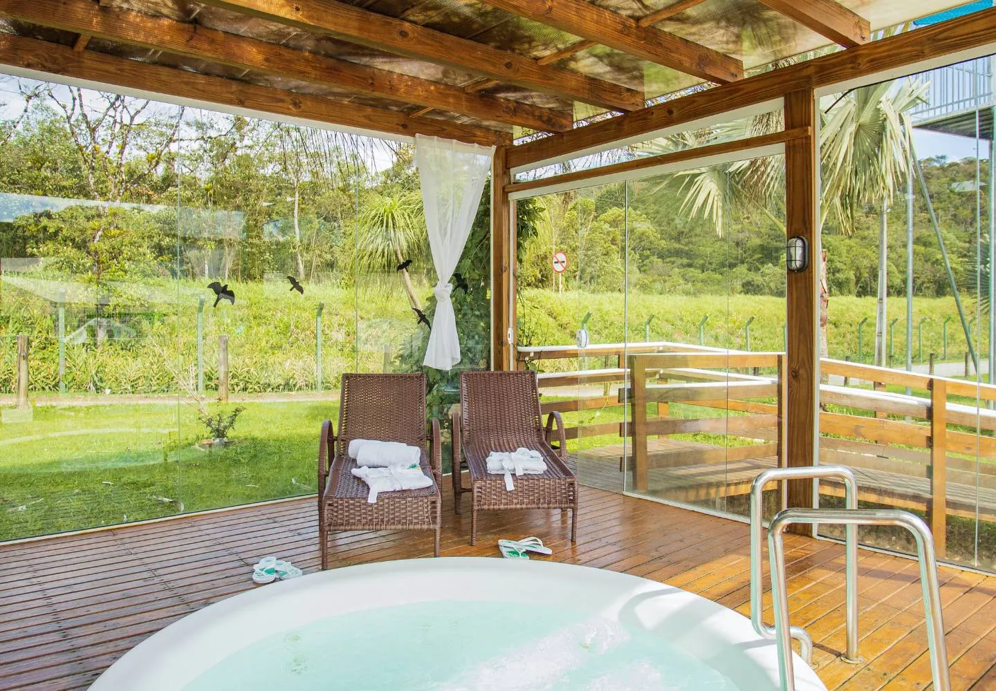 Ar condicionado Secador de cabelo TV a cabo / Smart TV Jacuzzi / Ofurô / Banheira Coberta Frigobar Lareira Máquina de Café Enxoval de Luxo (+ Roupão e Pantufa) Sauna Cozinha Estação de trabalho (mesa e cadeira) Piscina Aquecida ou climatizada Borda Infinita Coberta