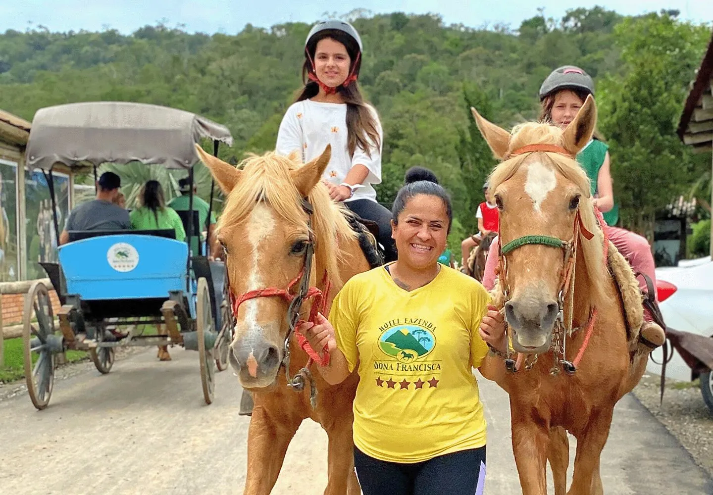 Localizado em Joinville, em meio aos encantos da serra catarinense, o Hotel Fazenda Dona Francisca é um lugar familiar de aconchego, tranquilidade e uma tradicional e farta gastronomia, que mergulha os hóspedes numa deliciosa atmosfera de chácara interiorana. O hotel oferece apartamentos amplos e modernos que acomodam até 5 pessoas, pensão completa com 6 refeições inclusas na diária, opções de acomodações com e sem hidromassagem, recreação e atividades para todos os gostos e idades, além de conexão com a natureza local e animais da fazenda. Viva essa experiência incrível com a sua família em um hotel fazenda de verdade!