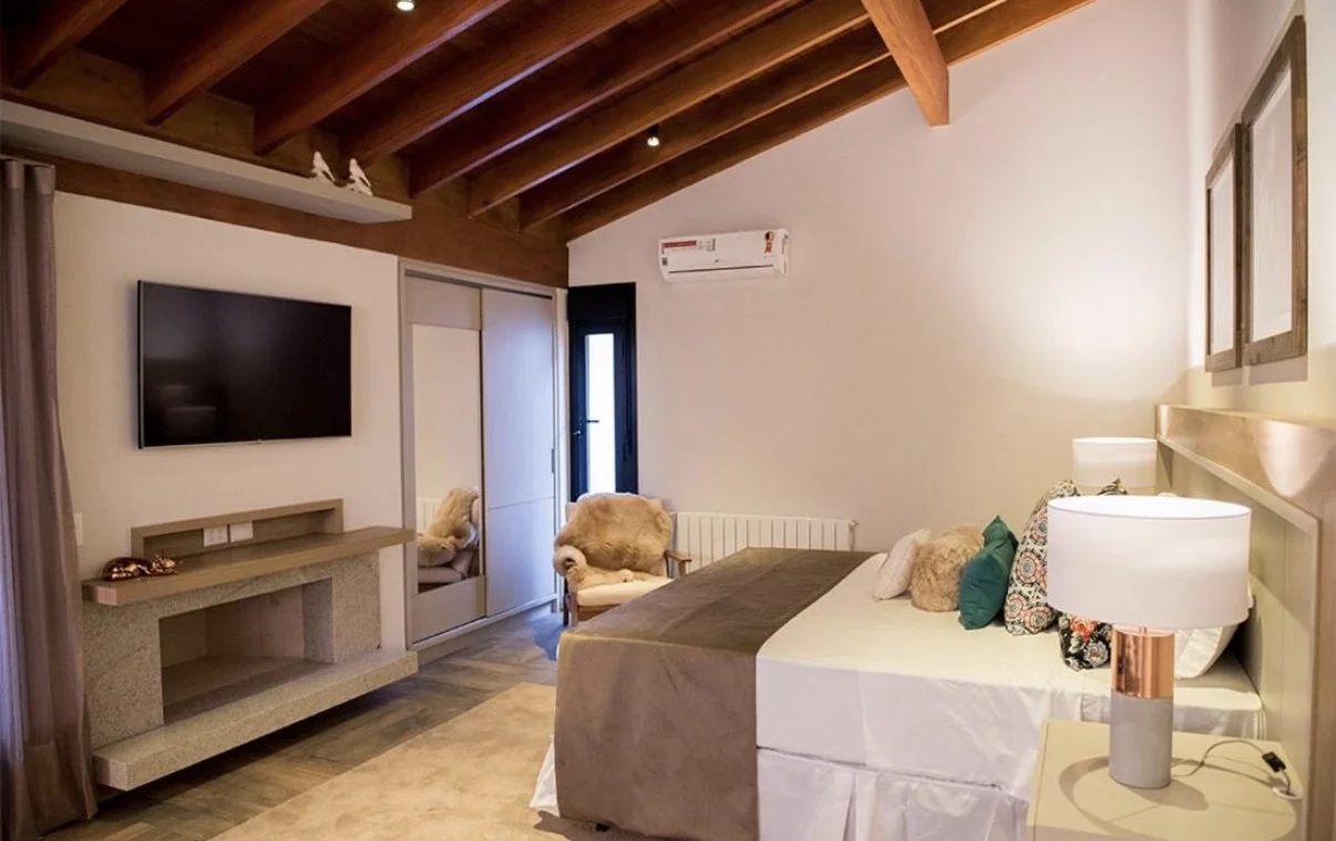 Ar condicionado Secador de cabelo TV a cabo / Smart TV Jacuzzi / Ofurô / Banheira Coberta Frigobar Lareira Máquina de Café Enxoval de Luxo (+ Roupão e Pantufa) Sauna Cozinha Estação de trabalho (mesa e cadeira) Piscina Aquecida ou climatizada Borda Infinita Coberta