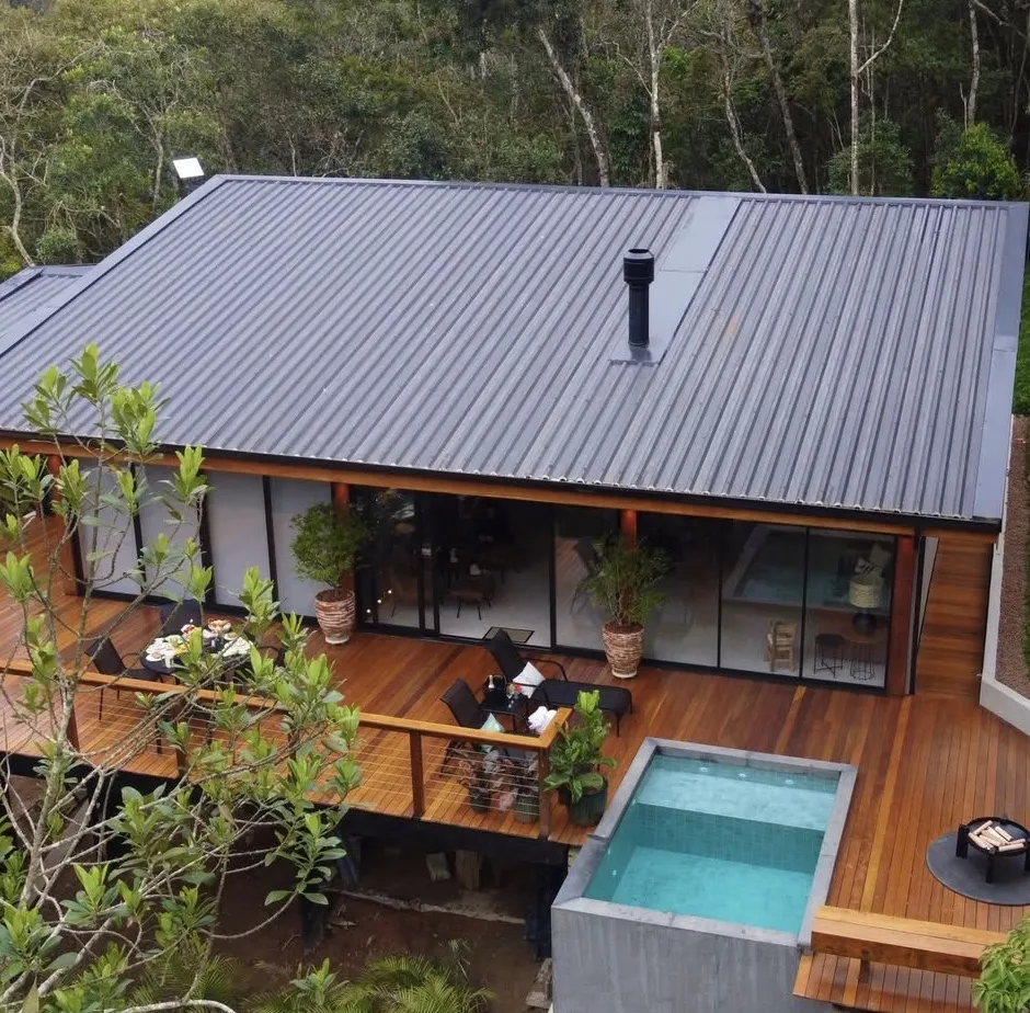 Esta cabana apresenta uma experiência privativa cercada pela natureza, com atmosfera acolhedora e integração total ao verde. Os ambientes foram planejados para oferecer tranquilidade e conforto, criando um refúgio perfeito para dias de descanso em meio à mata.