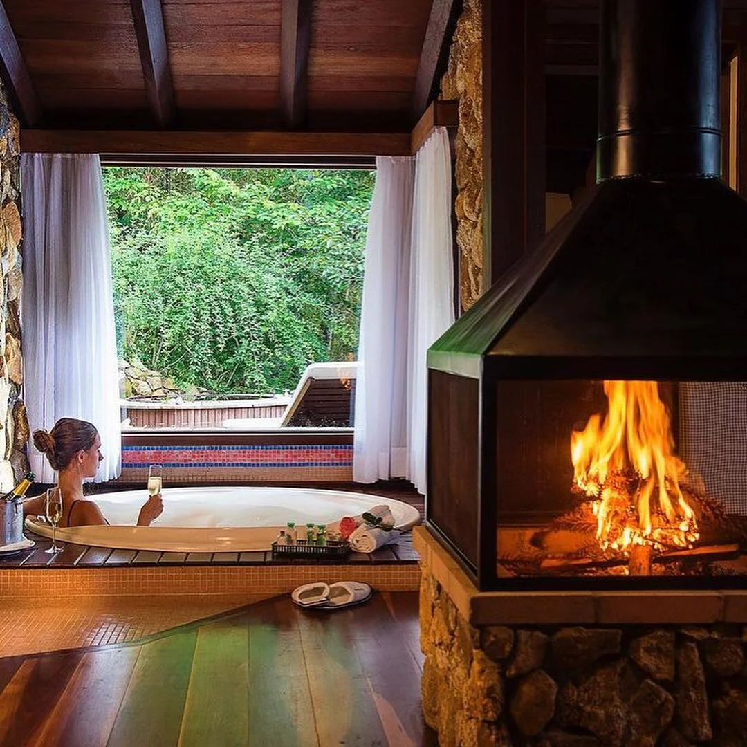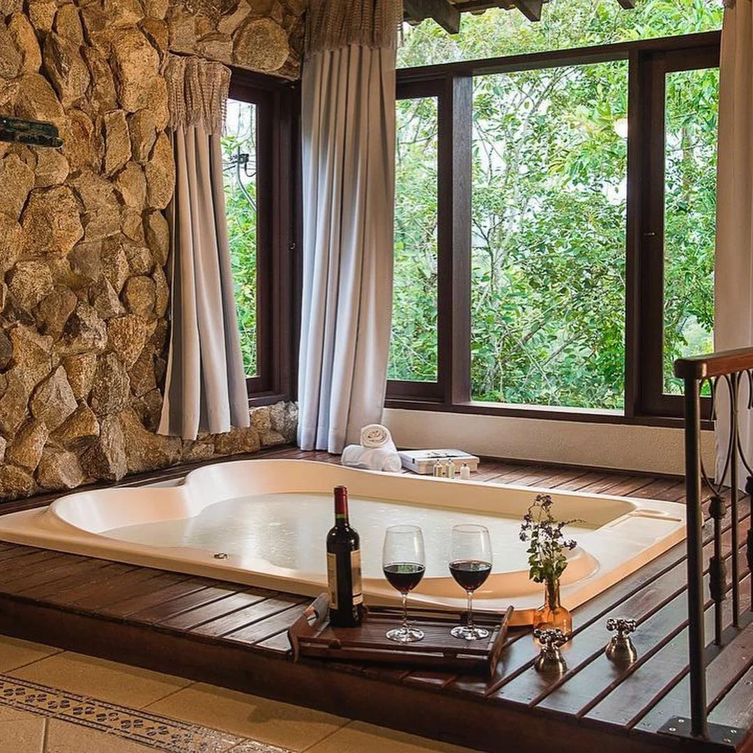 Ar condicionado Secador de cabelo TV a cabo / Smart TV Jacuzzi / Ofurô / Banheira Coberta Frigobar Lareira Máquina de Café Enxoval de Luxo (+ Roupão e Pantufa) Sauna Cozinha Estação de trabalho (mesa e cadeira) Piscina Aquecida ou climatizada Borda Infinita Coberta