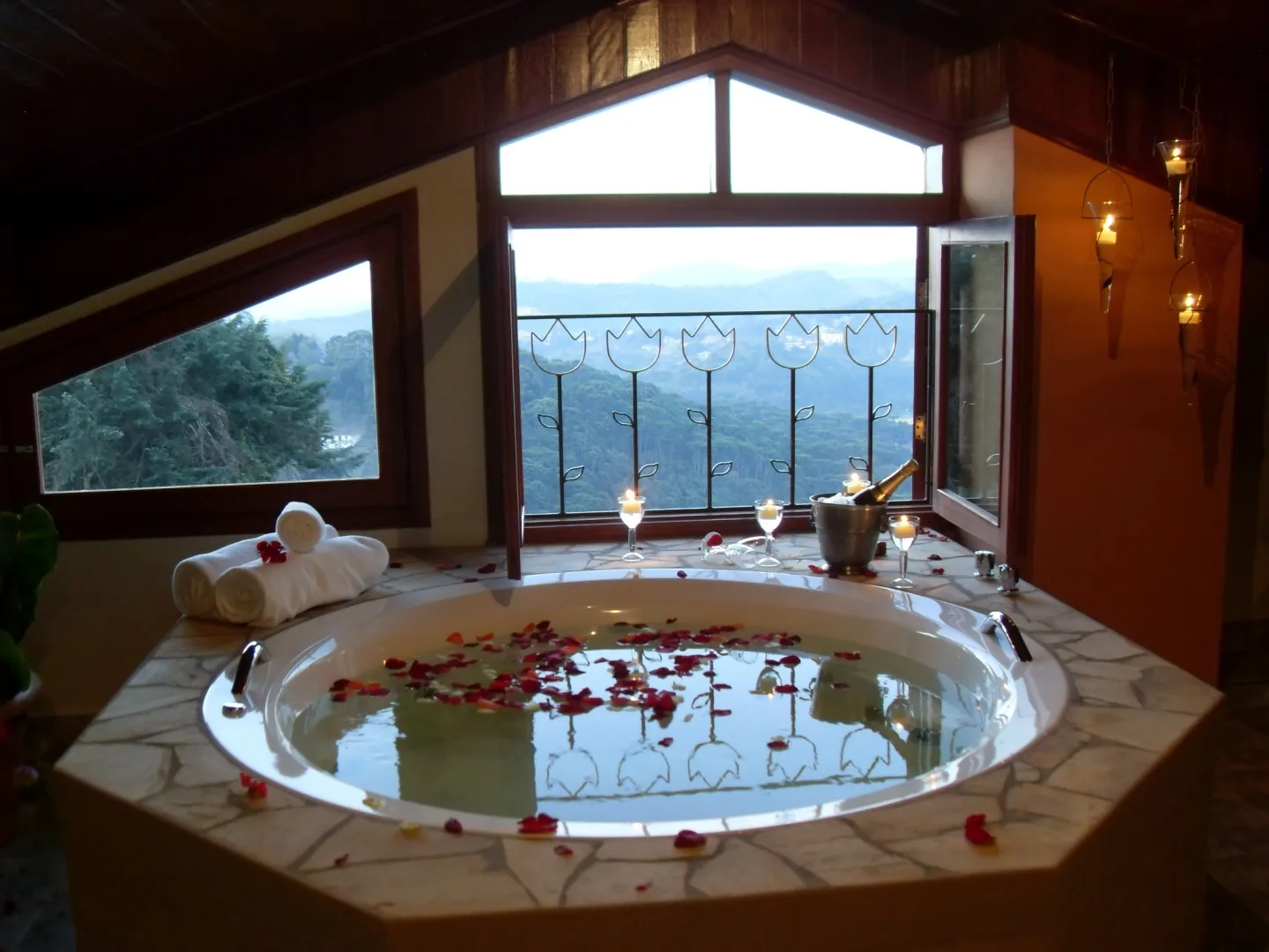 Ar condicionado Secador de cabelo TV a cabo / Smart TV Jacuzzi / Ofurô / Banheira Coberta Frigobar Lareira Máquina de Café Enxoval de Luxo (+ Roupão e Pantufa) Sauna Cozinha Estação de trabalho (mesa e cadeira) Piscina Aquecida ou climatizada Borda Infinita Coberta