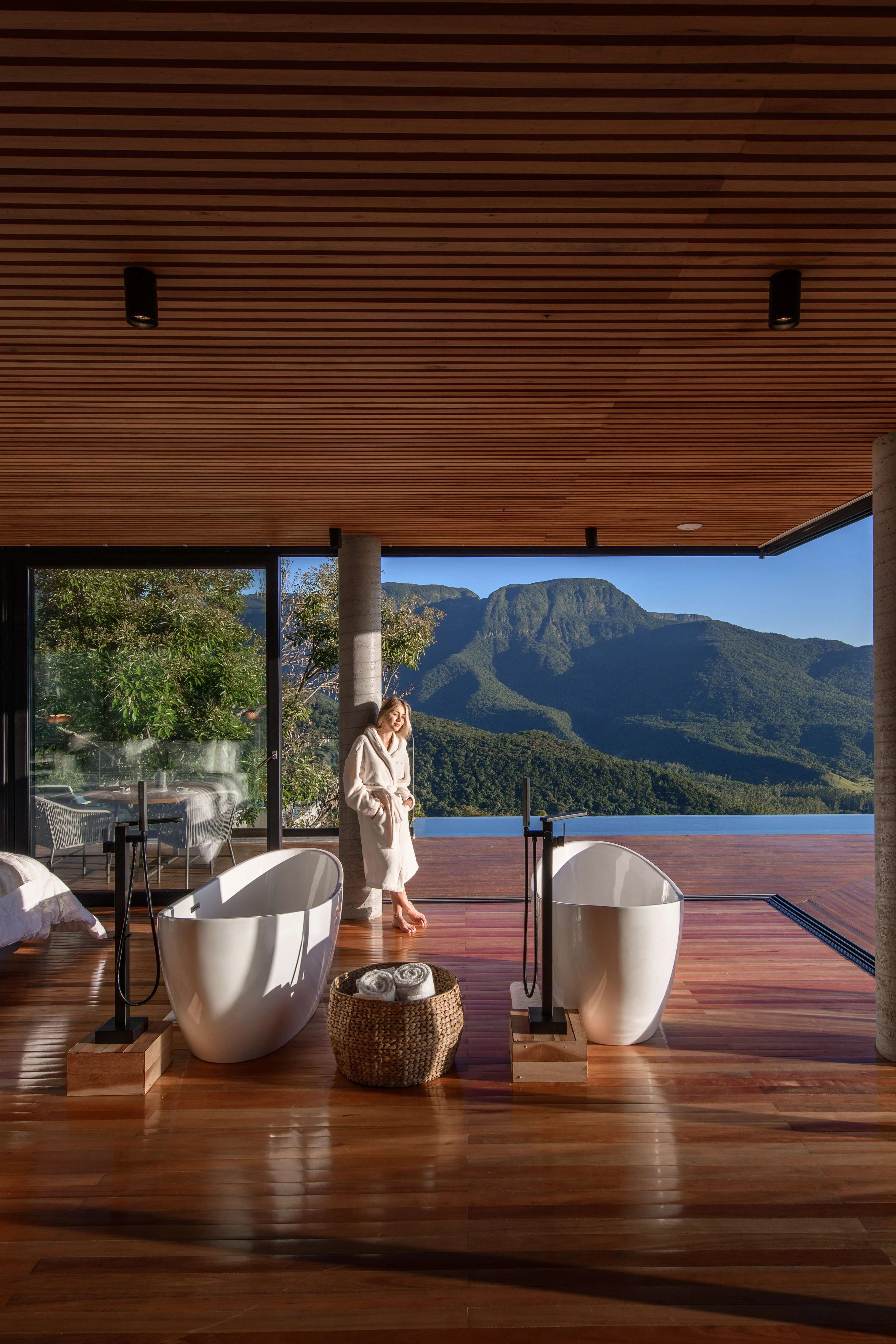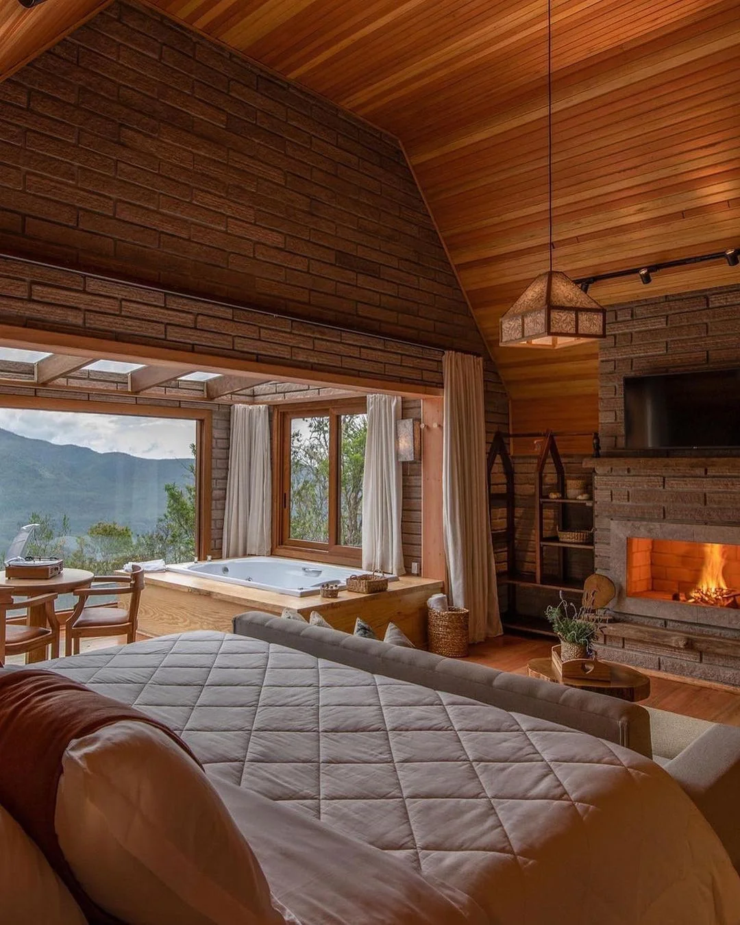 Conta com 11 chalés, 4 suítes e 2 casas de campo, ideais para casais e famílias que valorizam conforto e privacidade. Oferece dois restaurantes, piscinas aquecidas (uma coberta), lago próprio para banho, spa completo com massagens e saunas, adega, sala de jogos, loja exclusiva, trilha em meio à mata, espaço para eventos intimistas, heliponto, mirantes com vista panorâmica e conexão à internet em toda a área. Cada detalhe foi planejado para proporcionar momentos de relaxamento, romance e bem-estar em um ambiente único.