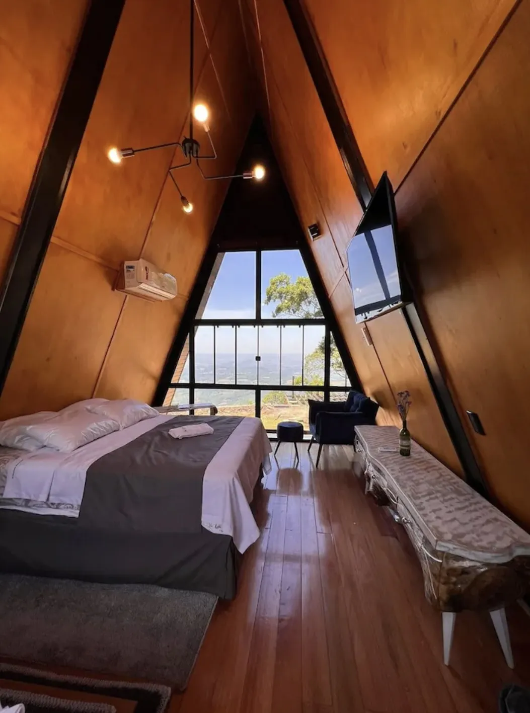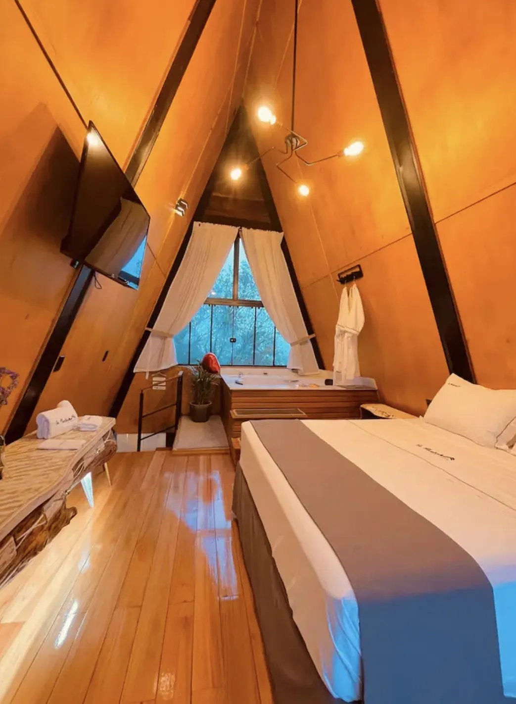 Na Montanha Eco Space, há dois chalés disponíveis: a Cabana dos Sonhos, que acomoda até 4 pessoas, Cabana do Amor, para até 3 pessoas, Cabana da pedra para 2 pessoas. Ambas são completas, oferecendo todo o conforto e requinte, com roupas de cama, cobertores, toalhas, roupões, chinelos, banheira, TVs, cozinhas equipadas, churrasqueira, ar condicionado e calefatores.