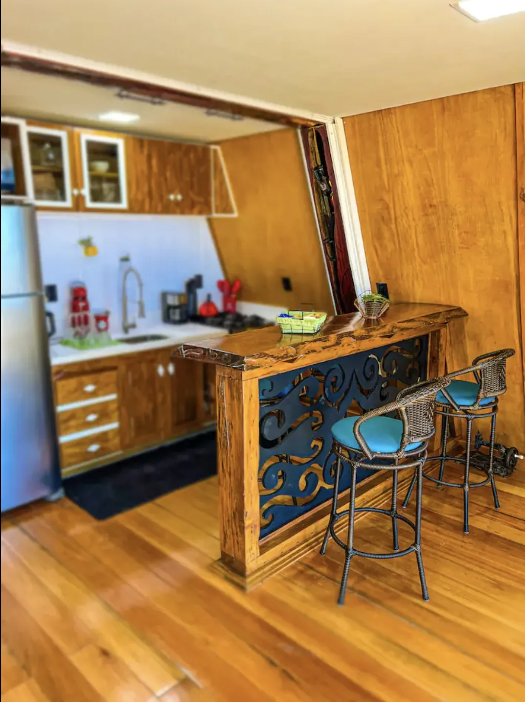 São 3 acomodações, a menor com capacidade para 2 pessoas e a maior, 4 pessoas