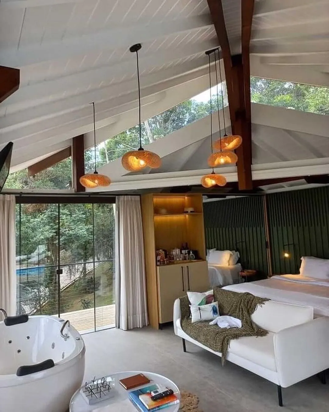 Ar condicionado Secador de cabelo TV a cabo / Smart TV Jacuzzi / Ofurô / Banheira Coberta Frigobar Lareira Máquina de Café Enxoval de Luxo (+ Roupão e Pantufa) Sauna Cozinha Estação de trabalho (mesa e cadeira) Piscina Aquecida ou climatizada Borda Infinita Coberta