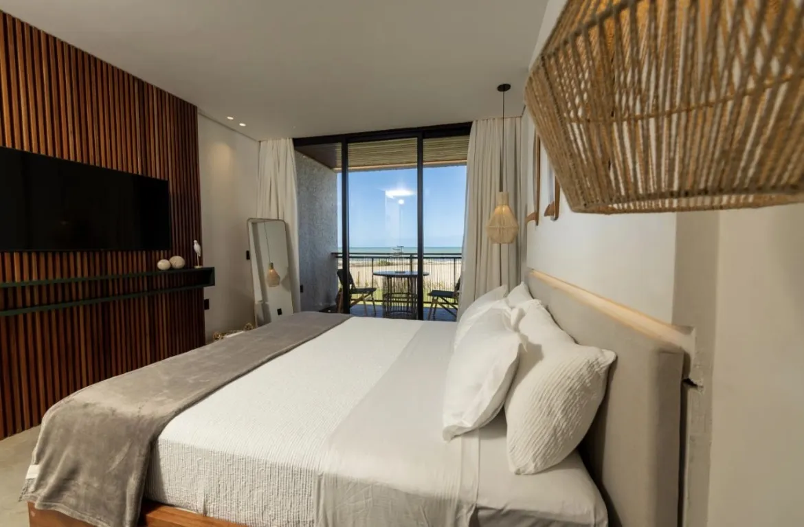 As 24 suítes oferecem um espaço generoso de 30m², proporcionando uma sensação de amplitude e conforto aos hóspedes. Além disso, cada suíte possui uma varanda de 6m², o que proporciona um espaço adicional para os hóspedes desfrutarem do ar fresco e das vistas ao ar livre.