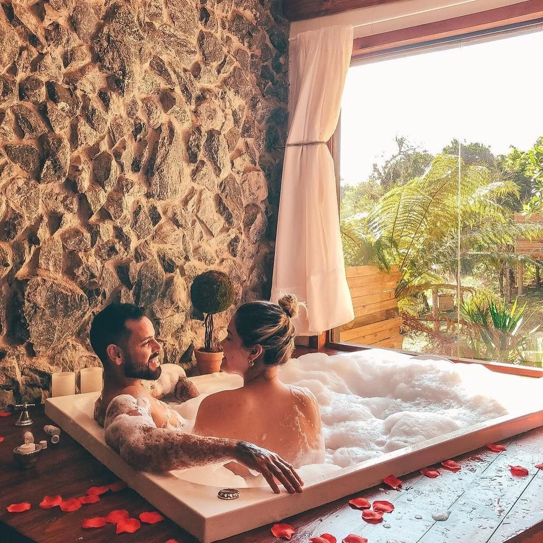 Ar condicionado Secador de cabelo TV a cabo / Smart TV Jacuzzi / Ofurô / Banheira Coberta Frigobar Lareira Máquina de Café Enxoval de Luxo (+ Roupão e Pantufa) Sauna Cozinha Estação de trabalho (mesa e cadeira) Piscina Aquecida ou climatizada Borda Infinita Coberta