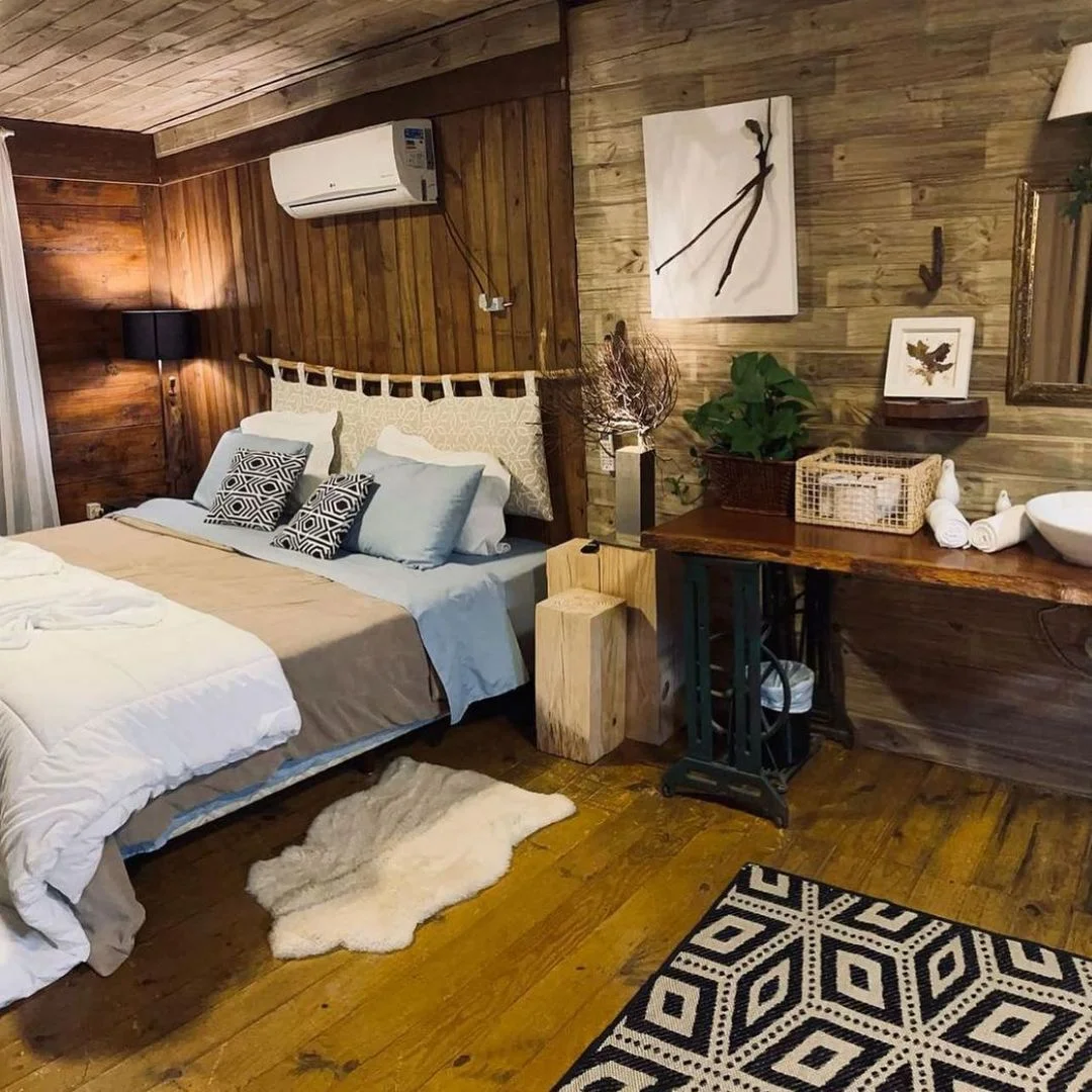 Ao todo, são 7 cabanas, todas aconchegantes, confortáveis e elegantes. É um lugar ideal para atender aos hóspedes que buscam contato com a natureza.