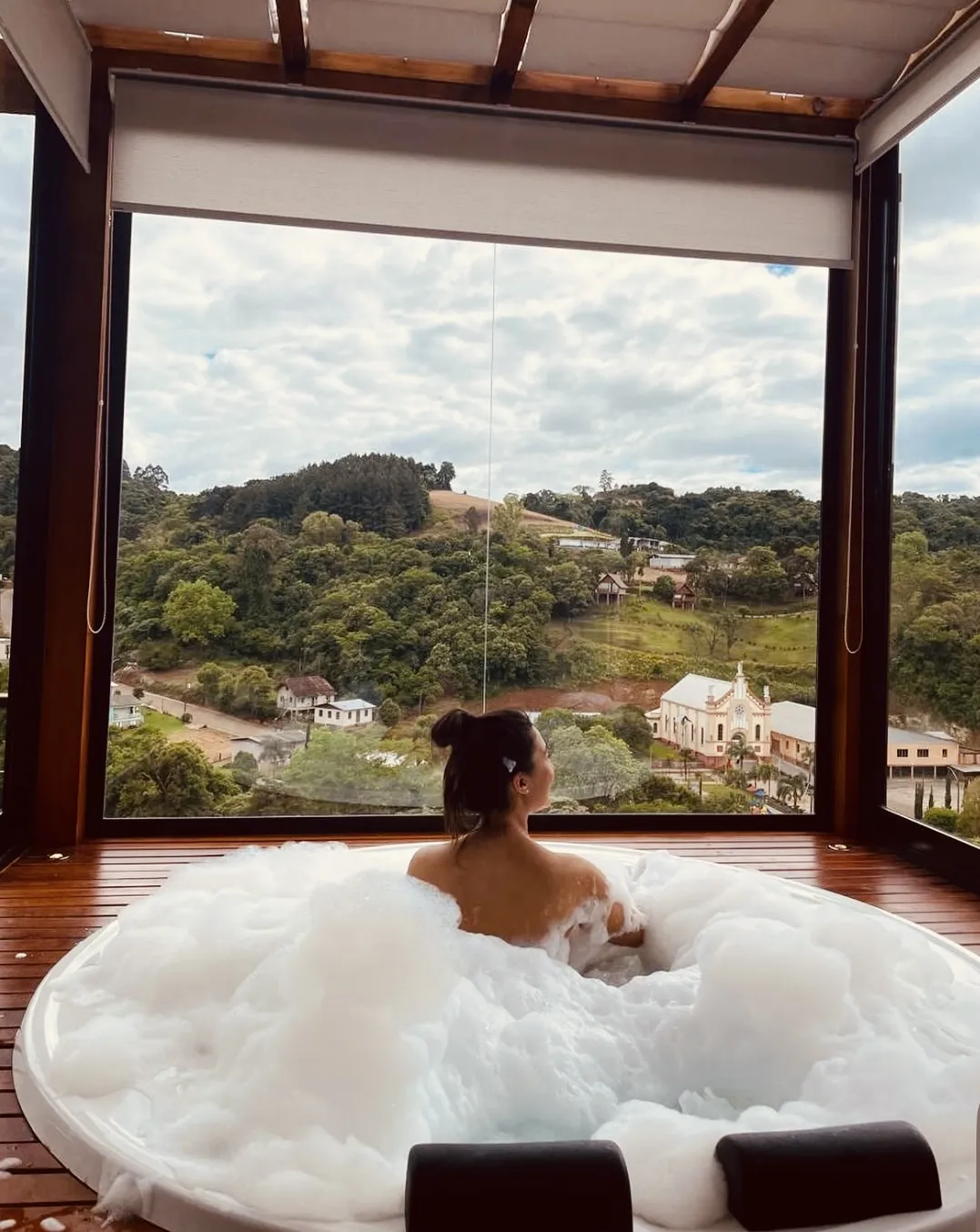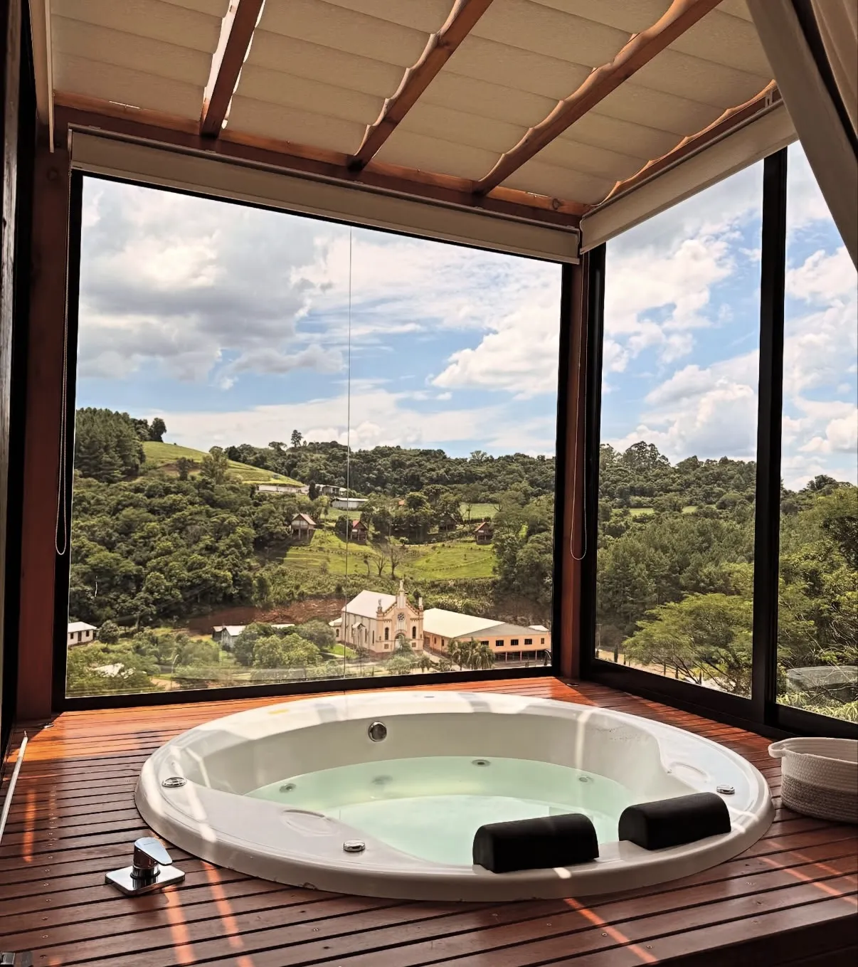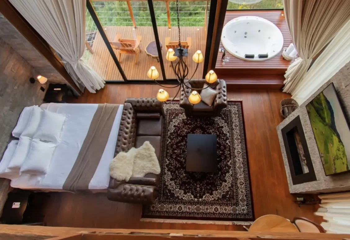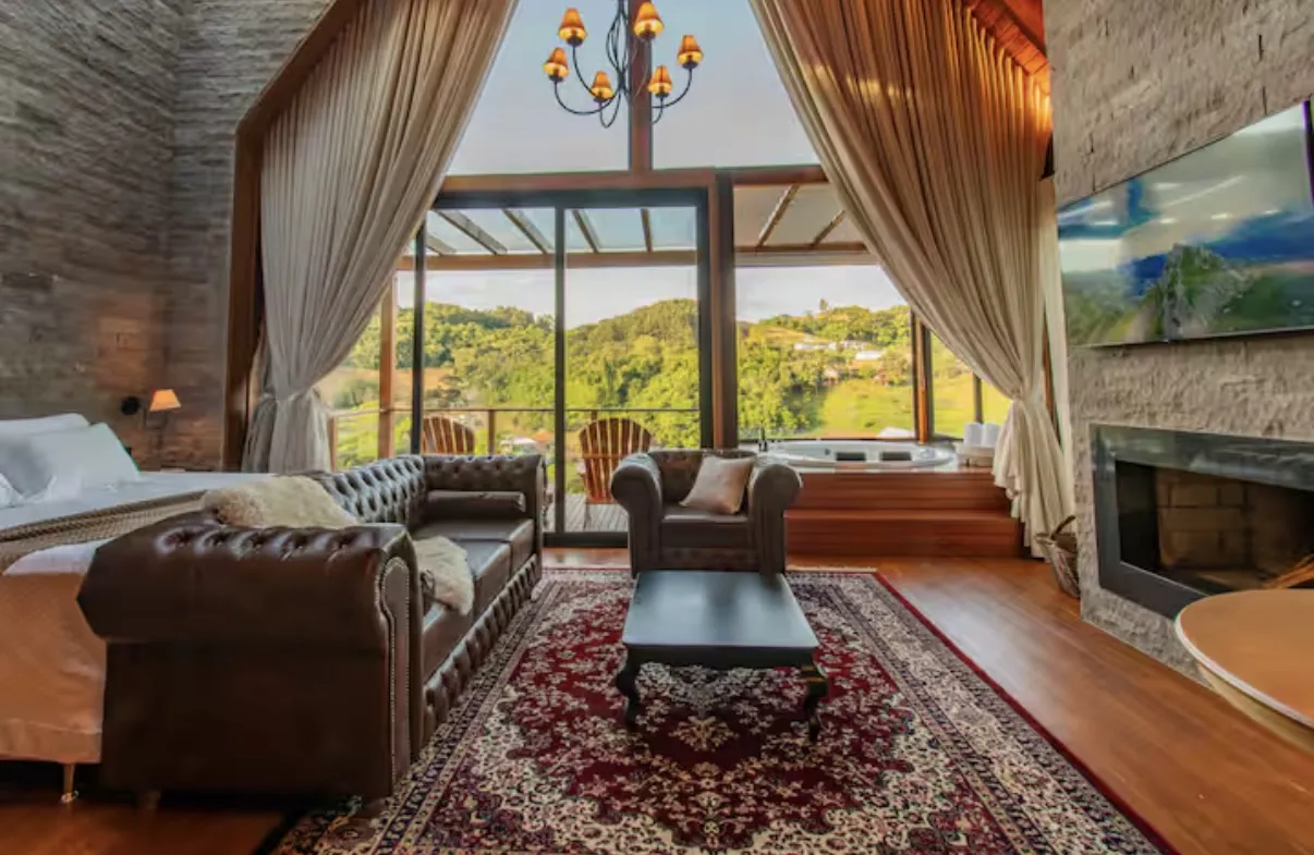Ar condicionado Secador de cabelo TV a cabo / Smart TV Jacuzzi / Ofurô / Banheira Coberta Frigobar Lareira Máquina de Café Enxoval de Luxo (+ Roupão e Pantufa) Sauna Cozinha Estação de trabalho (mesa e cadeira) Piscina Aquecida ou climatizada Borda Infinita Coberta