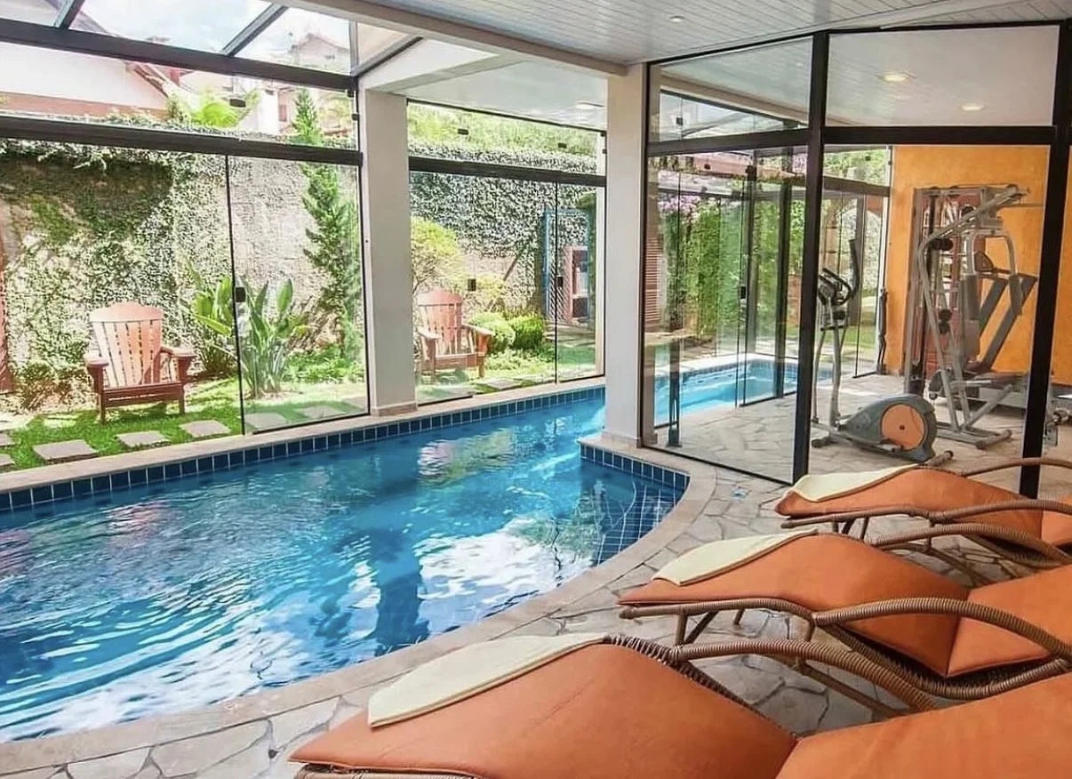 Ar condicionado Secador de cabelo TV a cabo / Smart TV Jacuzzi / Ofurô / Banheira Coberta Frigobar Lareira Máquina de Café Enxoval de Luxo (+ Roupão e Pantufa) Sauna Cozinha Estação de trabalho (mesa e cadeira) Piscina Aquecida ou climatizada Borda Infinita Coberta