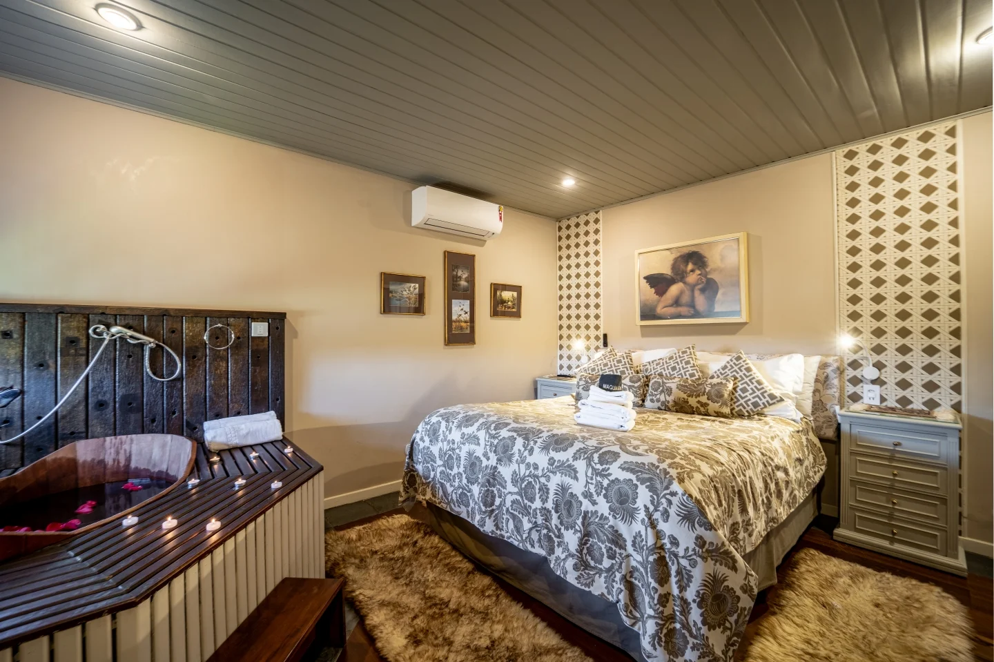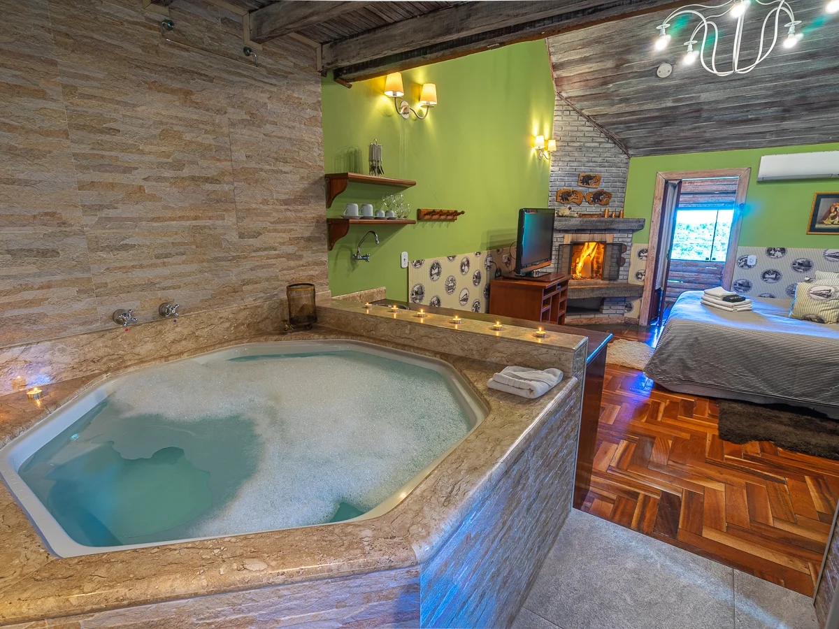 Ar condicionado Secador de cabelo TV a cabo / Smart TV Jacuzzi / Ofurô / Banheira Coberta Frigobar Lareira Máquina de Café Enxoval de Luxo (+ Roupão e Pantufa) Sauna Cozinha Estação de trabalho (mesa e cadeira) Piscina Aquecida ou climatizada Borda Infinita Coberta