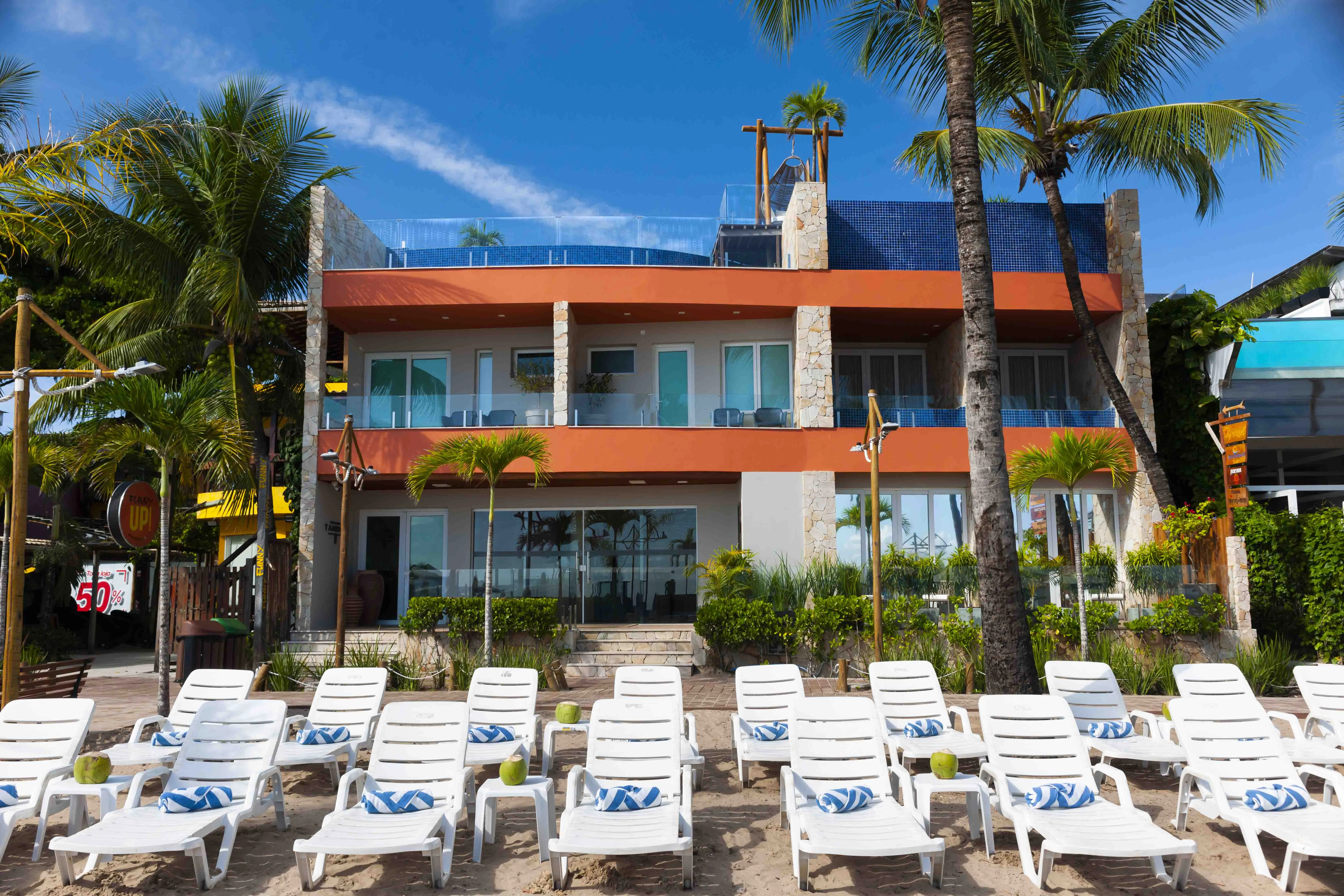 O serviço de praia com espreguiçadeiras e guarda-sóis está incluso na diária, oferecendo mais comodidade à beira-mar. O café da manhã, variado e saboroso, destaca ingredientes frescos e toques da culinária regional.