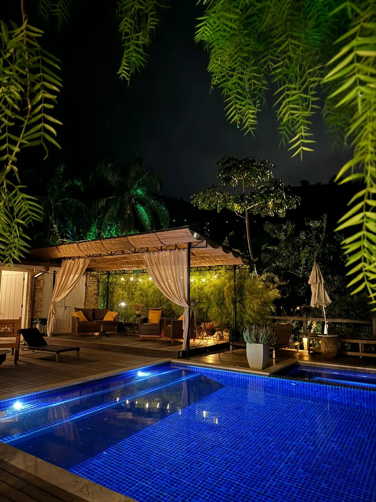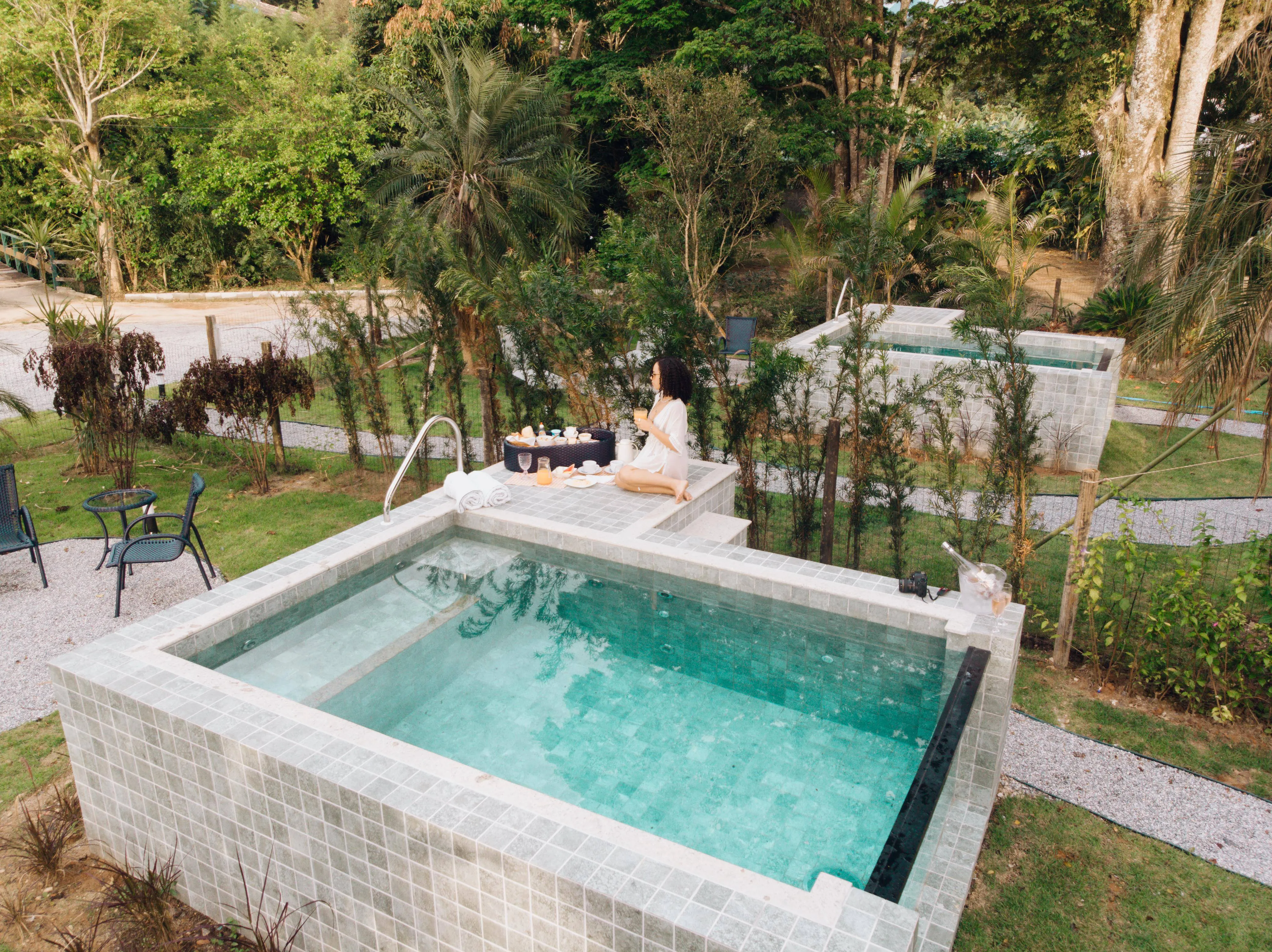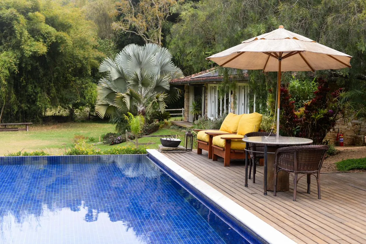 As suítes com piscina particular são incríveis para os que procuram privacidade. A pousada possui sauna e sala de tv.