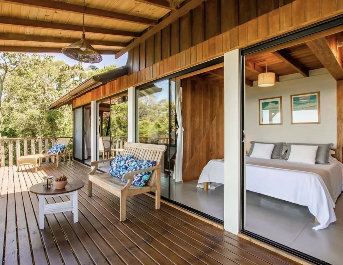 Localizada a pouco mais de 1 km do centrinho do Rosa em uma área verde de mais de 3000 m² com bela mata nativa, a pousada possui 8 privativos chalés independentes e suítes com vistas exclusivas da Praia do Rosa que proporcionam momentos tranquilos de rara contemplação.