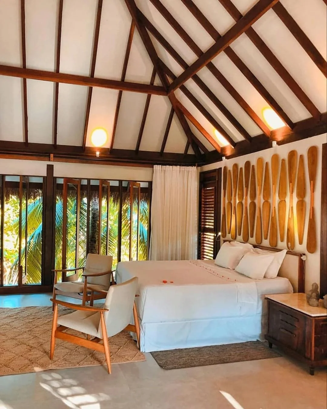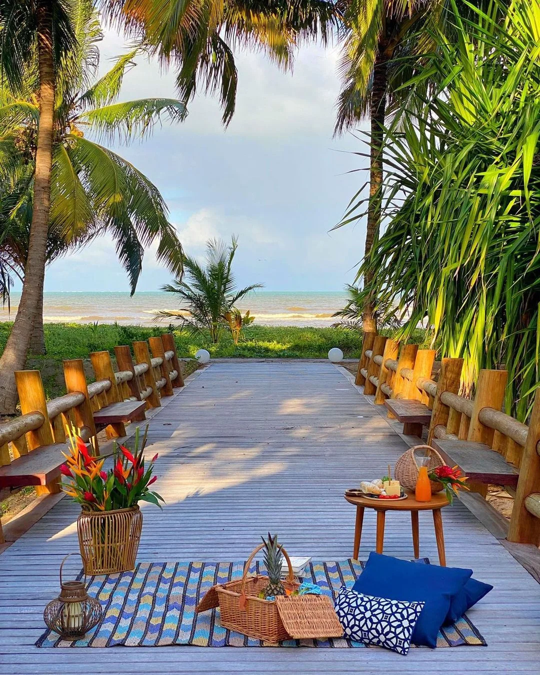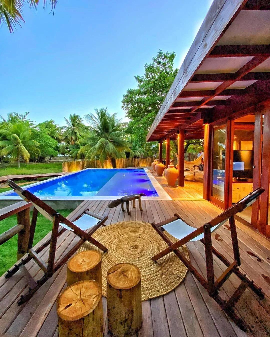 Localizada em uma exígua península com 300 metros paralelos ao mar, Camurim Grande é uma pousada que no passado foi também uma casa. A morada é do casal Marcelo Lacerda e Cristiana Freire (Kiti) que, no ano de 1992, escolheu este pedacinho da praia de Maragogi para viver. Ali, os dois passaram a receber seus pais, irmãos, cunhados, filhos - e também os primos e amigos dos filhos. Foi assim que, ao longo do tempo, Kiti e Marcelo fizeram de seu lar um território de afeto. Em 2012, esse espaço sentimental cedeu lugar a mais pessoas. Foi ampliado e transformado em pousada - quase que naturalmente com o projeto do arquiteto Pedro Motta, que recebeu o prêmio Top Class de Arquitetura, com o melhor projeto empresarial da Pousada Camurim Grande. A antiga residência abriu suas portas em forma de restaurante. Ao redor dela, foram erguidos bangalôs e chalés. Acolher foi o verbo que guiou todo o projeto de transformar o que antes era uma casa em um espaço coletivo. Acolher visitantes, acolher casais, famílias. Acolher encontros - e as celebrações vindas a partir deles. Mas acolher também a natureza: apenas 5% do terreno de cinco hectares foi ocupado para construção da Pousada Camurim Grande. No restante da área reinam um coqueiral, pés de manga e de caju, manguezais: área verde que é berço da biodiversidade, a vida.