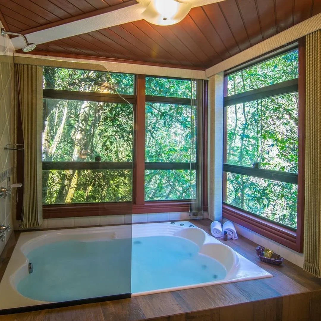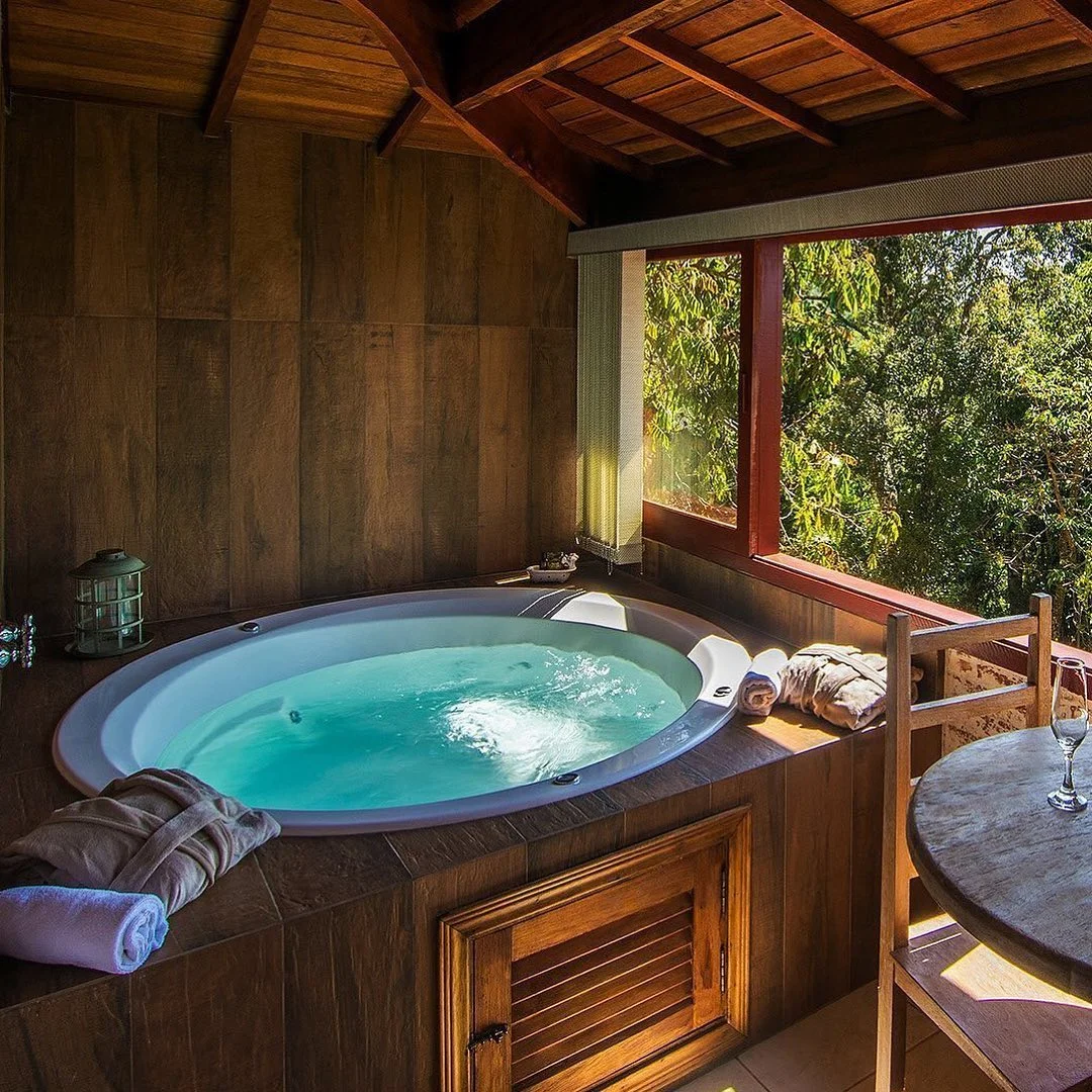 Ar condicionado Secador de cabelo TV a cabo / Smart TV Jacuzzi / Ofurô / Banheira Coberta Frigobar Lareira Máquina de Café Enxoval de Luxo (+ Roupão e Pantufa) Sauna Cozinha Estação de trabalho (mesa e cadeira) Piscina Aquecida ou climatizada Borda Infinita Coberta