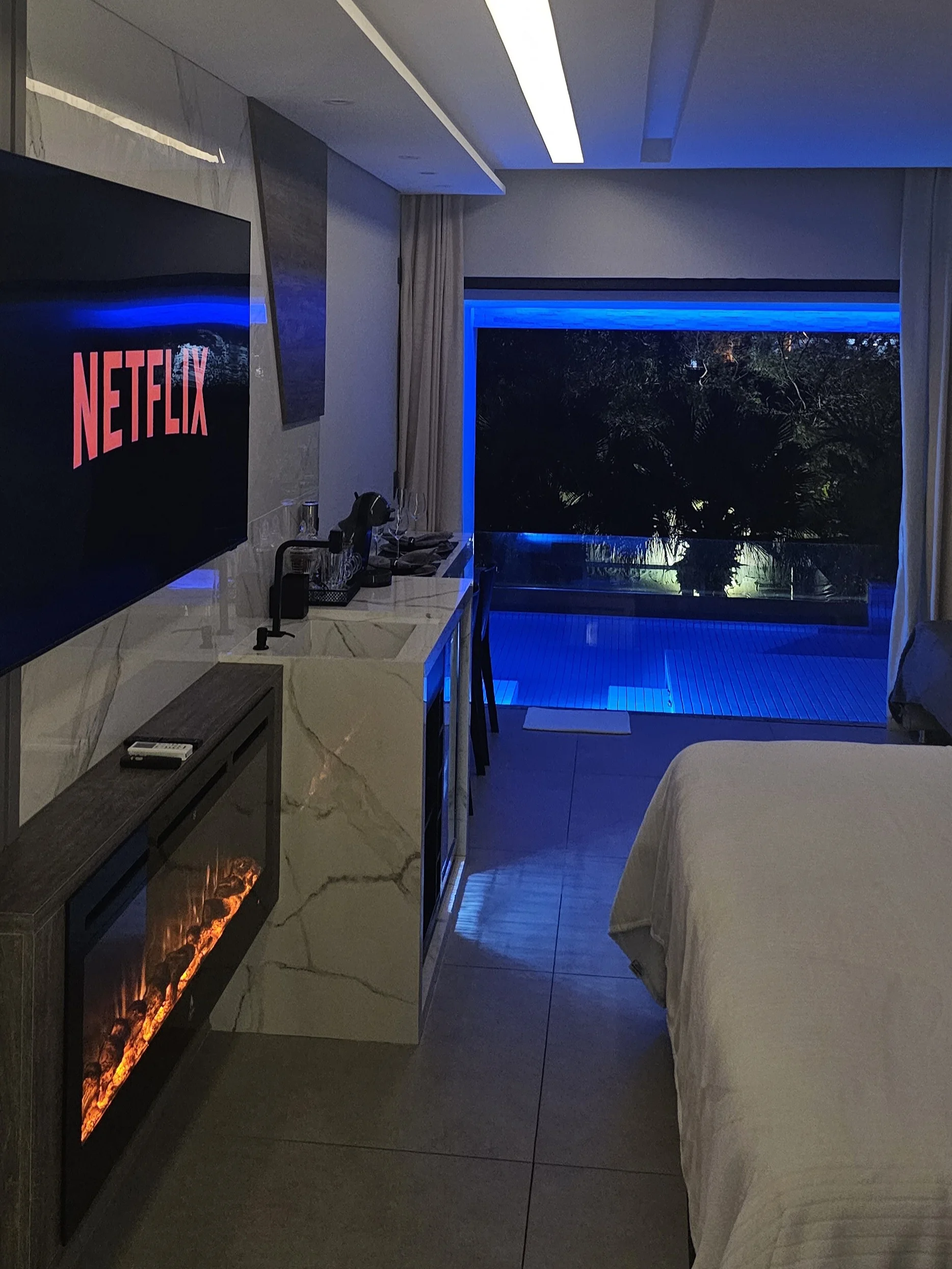 Ar condicionado Secador de cabelo TV a cabo / Smart TV Jacuzzi / Ofurô / Banheira Coberta Frigobar Lareira Máquina de Café Enxoval de Luxo (+ Roupão e Pantufa) Sauna Cozinha Estação de trabalho (mesa e cadeira) Piscina Aquecida ou climatizada Borda Infinita Coberta