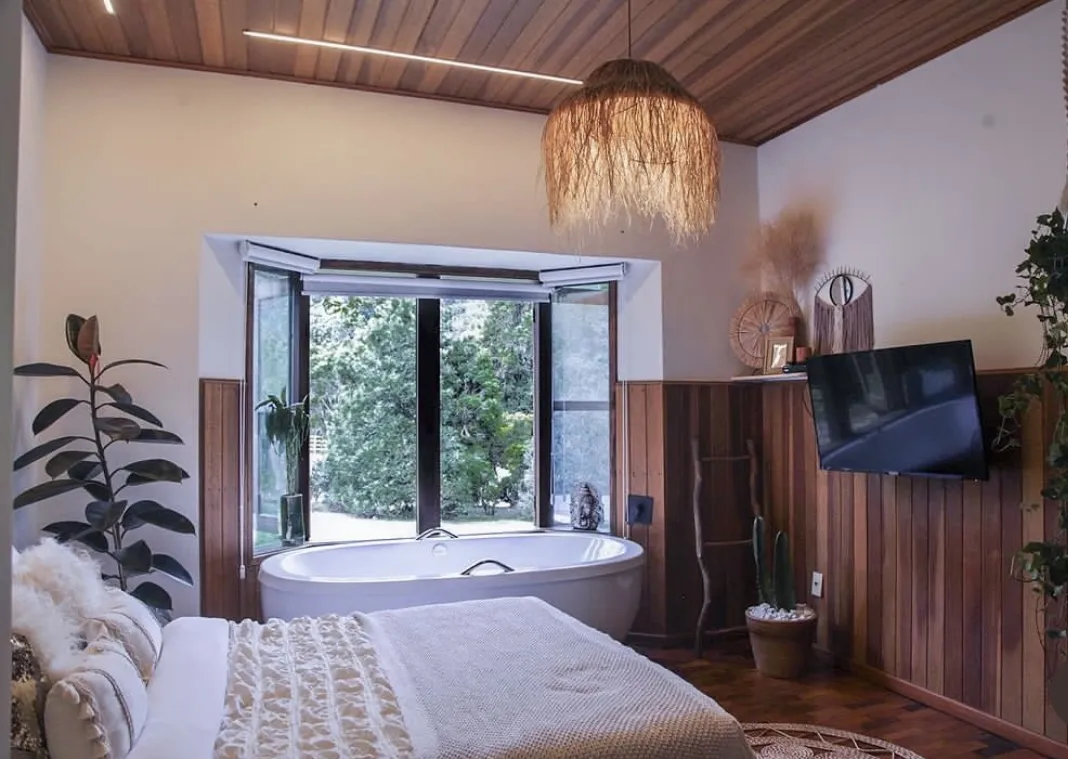 Ar condicionado Secador de cabelo TV a cabo / Smart TV Jacuzzi / Ofurô / Banheira Coberta Frigobar Lareira Máquina de Café Enxoval de Luxo (+ Roupão e Pantufa) Sauna Cozinha Estação de trabalho (mesa e cadeira) Piscina Aquecida ou climatizada Borda Infinita Coberta
