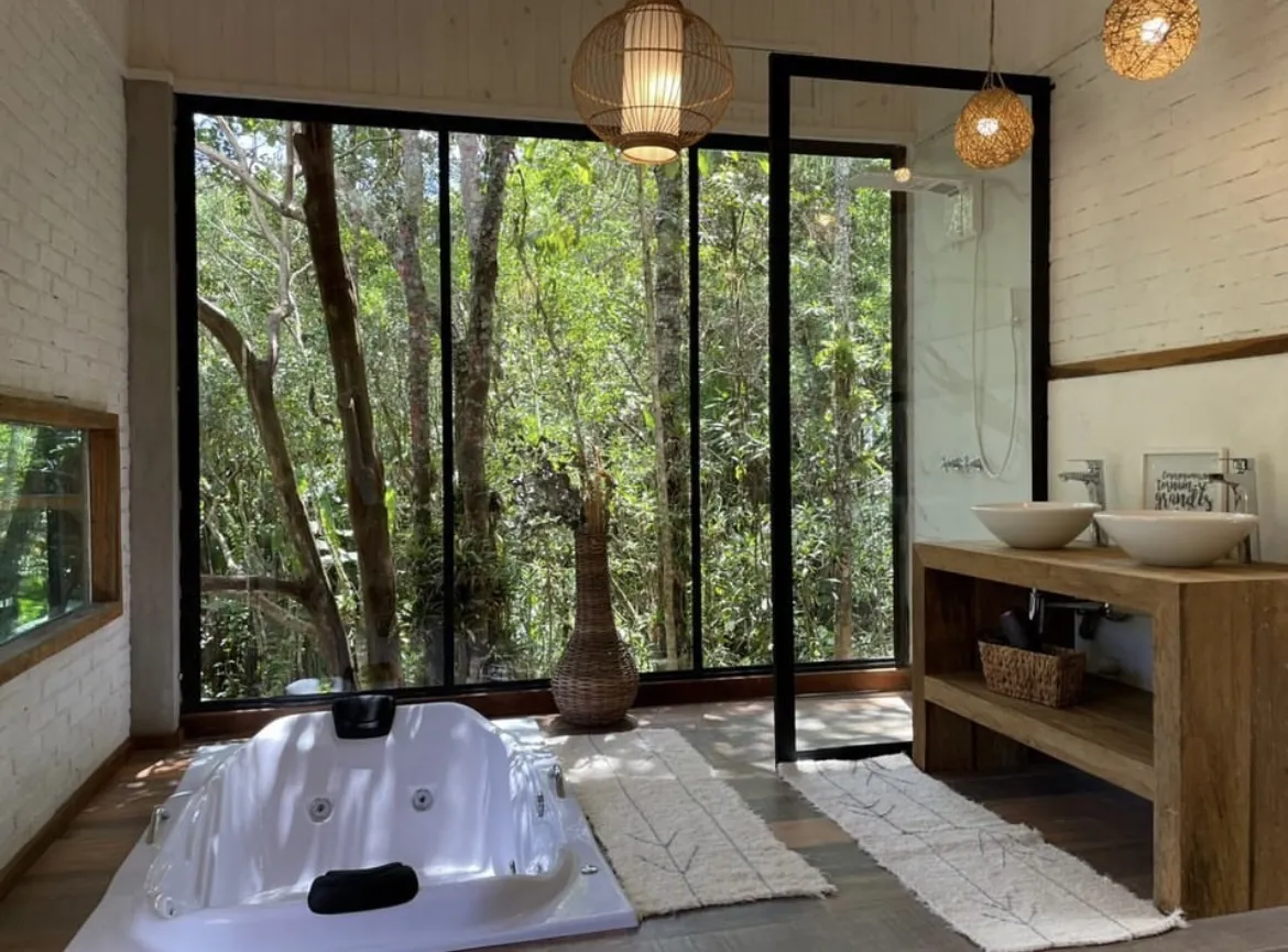 Localizada no Vale do Alcantilado, um dos vales mais bonitos da região, em um espaço cercado por natureza preservada e privacidade, a pousada possui uma decoração conceitual estilo boho chic. A arquitetura do local, cercada por vidros voltados para a natureza, permite aos hóspedes uma imersão em uma experiência inesquecível em contato com a natureza. Conforto, paz e lazer também não faltarão, pois os chalés contam com uma área de 50 m2, vistas cercadas por mata, camas amplas, lareira, frigobar retrô, TV de 50 polegadas, ar condicionado, aquecedor, hidromassagem e uma varanda voltada para as montanhas, além do delicioso café da manhã colonial e orgânico. A decoração e a localização garantem aos hóspedes uma imersão na natureza e no verdadeiro espírito das montanhas, mas, ao mesmo tempo, permitem um acesso fácil e cômodo às vilas de Maringá, Maromba e Visconde de Mauá, pois a pousada fica a 6km do centrinho de Maringá e a 9km de Visconde de Mauá. Para aqueles que não desejam utilizar o carro, a pousada está localizada próxima aos maiores atrativos da região.