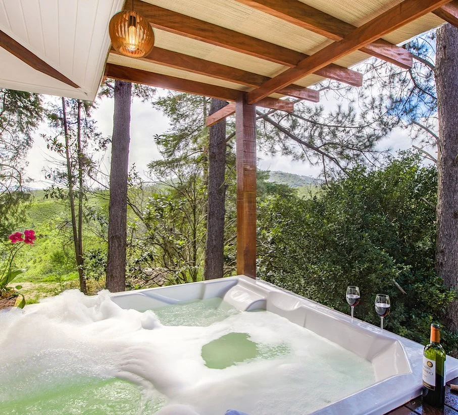 São 7 Categorias de Chalés: 1- CHALÉ ORQUÍDEA: lareira, sala de estar com sofá e TV, frigobar, banheiro privativo, varanda com rede e banheira de hidromassagem dupla com vista para as montanhas. 2- CHALÉ JASMIM: aquecedor, frigobar, banheiro privativo e varanda com rede 3- CHALÉ LÍRIO: lareira, ofurô, frigobar, banheiro privativo, varanda com rede 4- CHALÉ BROMÉLIA: lareira, sala com sofá-cama, frigobar, rede de repouso e banheira de hidromassagem dupla 5- CHALÉ AMARÍLIS: lareira, frigobar, banheiro privativo e varanda com rede 6- CHALÉ TULIPA lareira, frigobar, banheiro privativo e varanda com rede 7- CHALÉ HORTÊNSIA: lareira, frigobar, banheiro privativo e varanda com rede