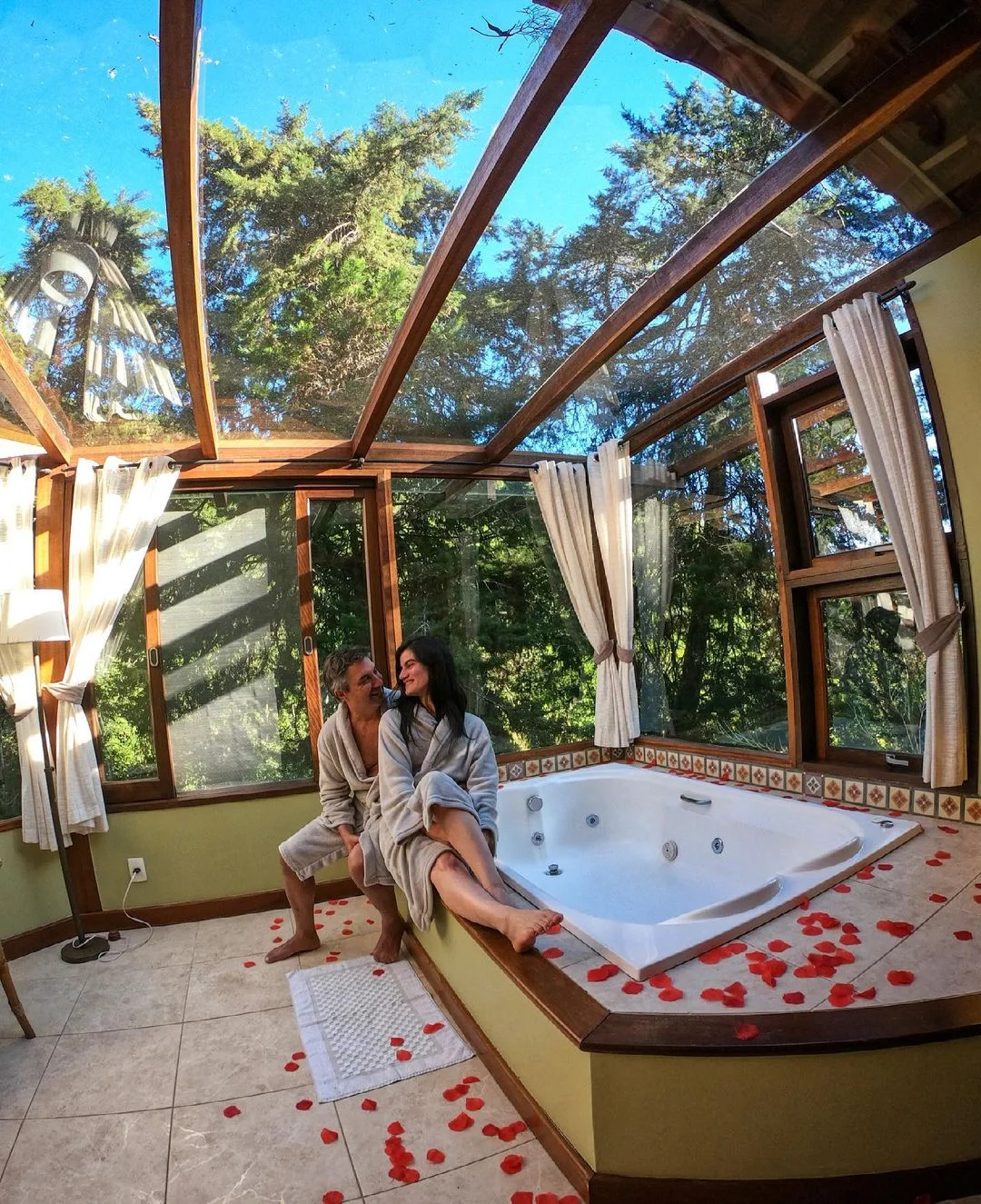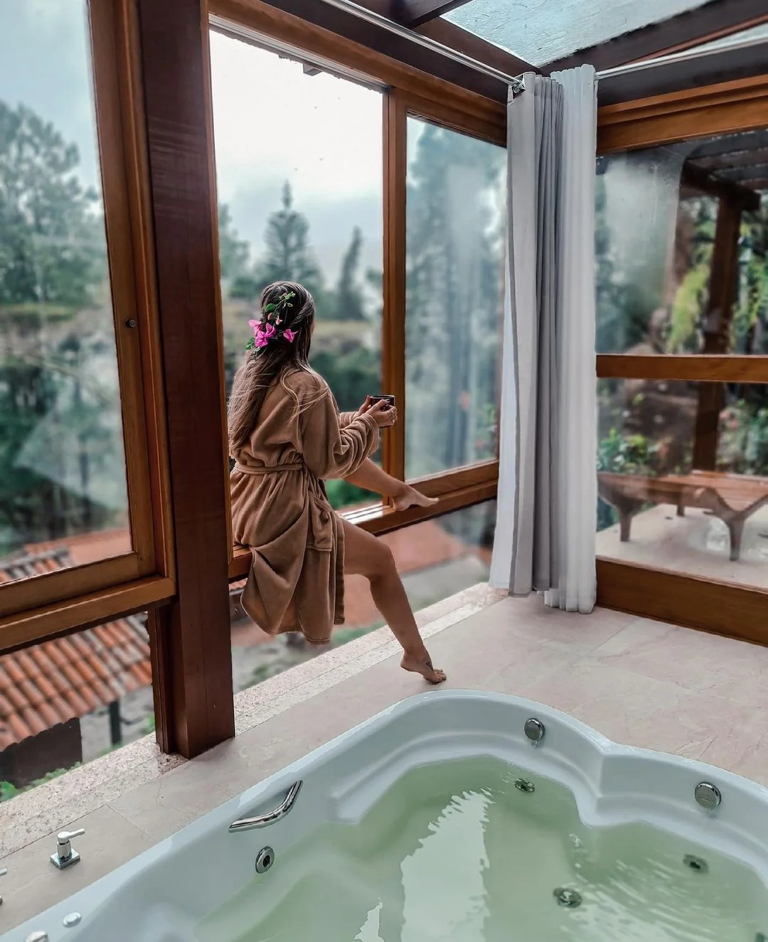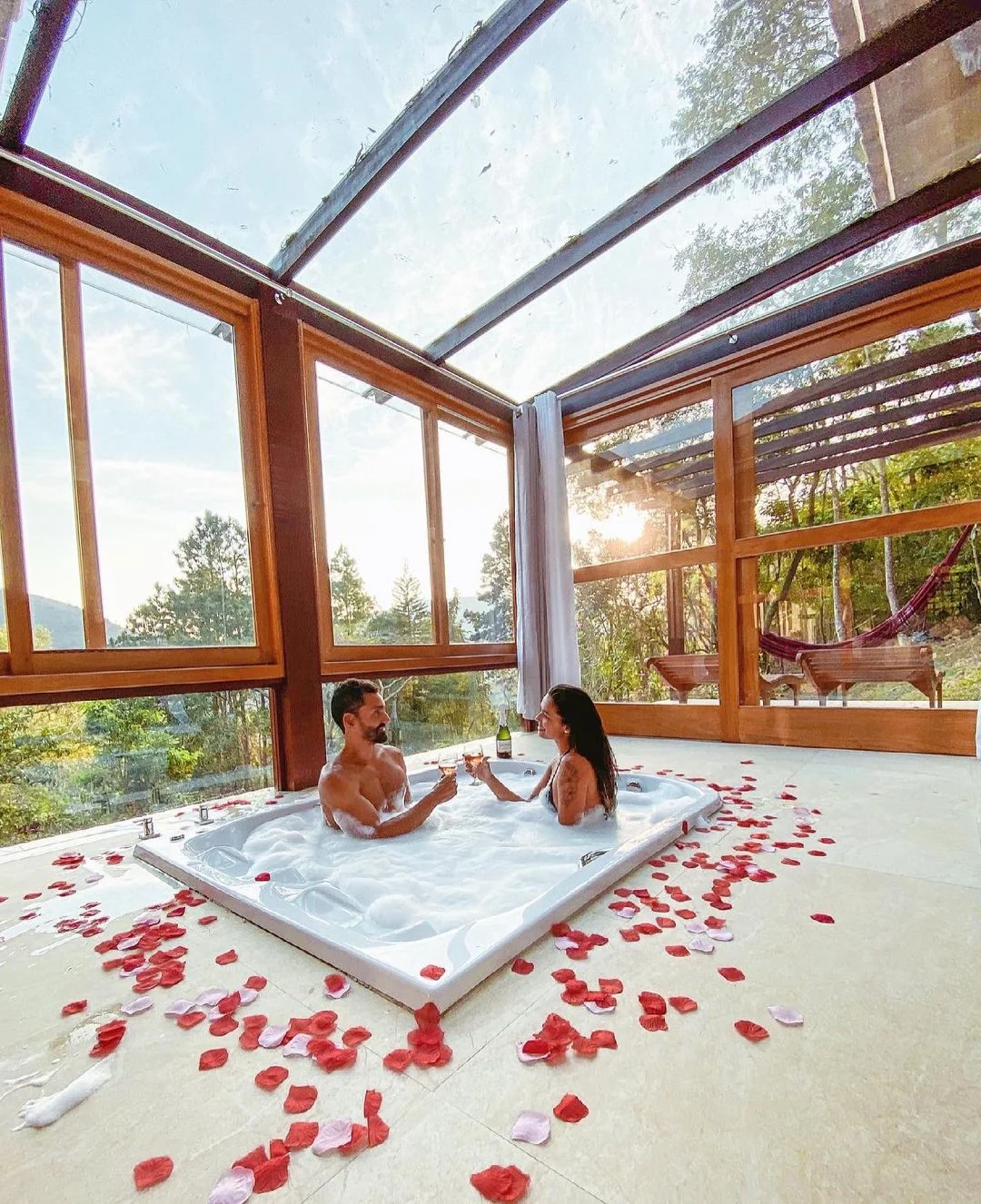 Ar condicionado Secador de cabelo TV a cabo / Smart TV Jacuzzi / Ofurô / Banheira Coberta Frigobar Lareira Máquina de Café Enxoval de Luxo (+ Roupão e Pantufa) Sauna Cozinha Estação de trabalho (mesa e cadeira) Piscina Aquecida ou climatizada Borda Infinita Coberta
