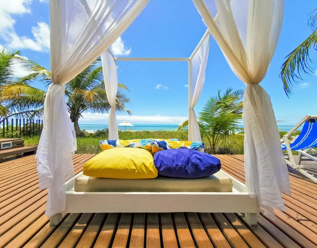 No estilo casa de praia, a Vila Sagui se destaca em meio a tanta natureza. Seu lindo jardim e os coqueirais, em conjunção com o mar logo em frente, fazem deste lugar o cenário perfeito para quem quer desconectar da correria do dia a dia.