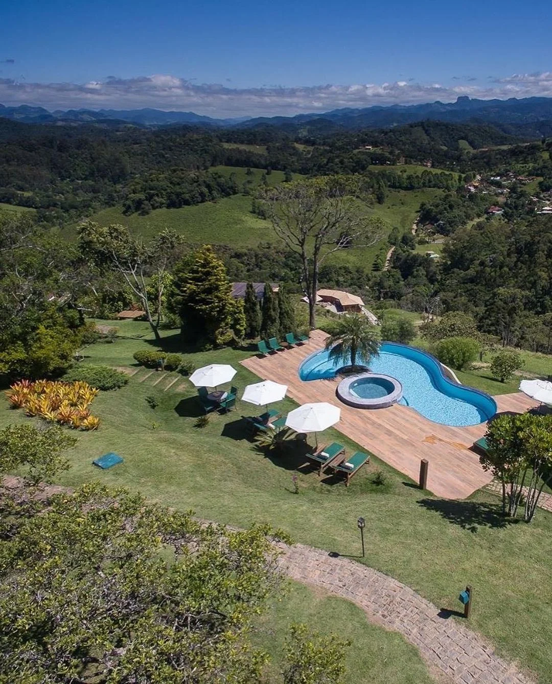 Um lugar mágico, de incrível beleza, onde se sente que se pode tocar nas nuvens. A Pedra do Baú, elegante e imponente no horizonte, dourada pelos contornos da Serra da Mantiqueira, onde o verde da montanha se mistura com o azul do céu. O charme e a natureza harmoniosamente aproveitada tornam o lugar indescritível.