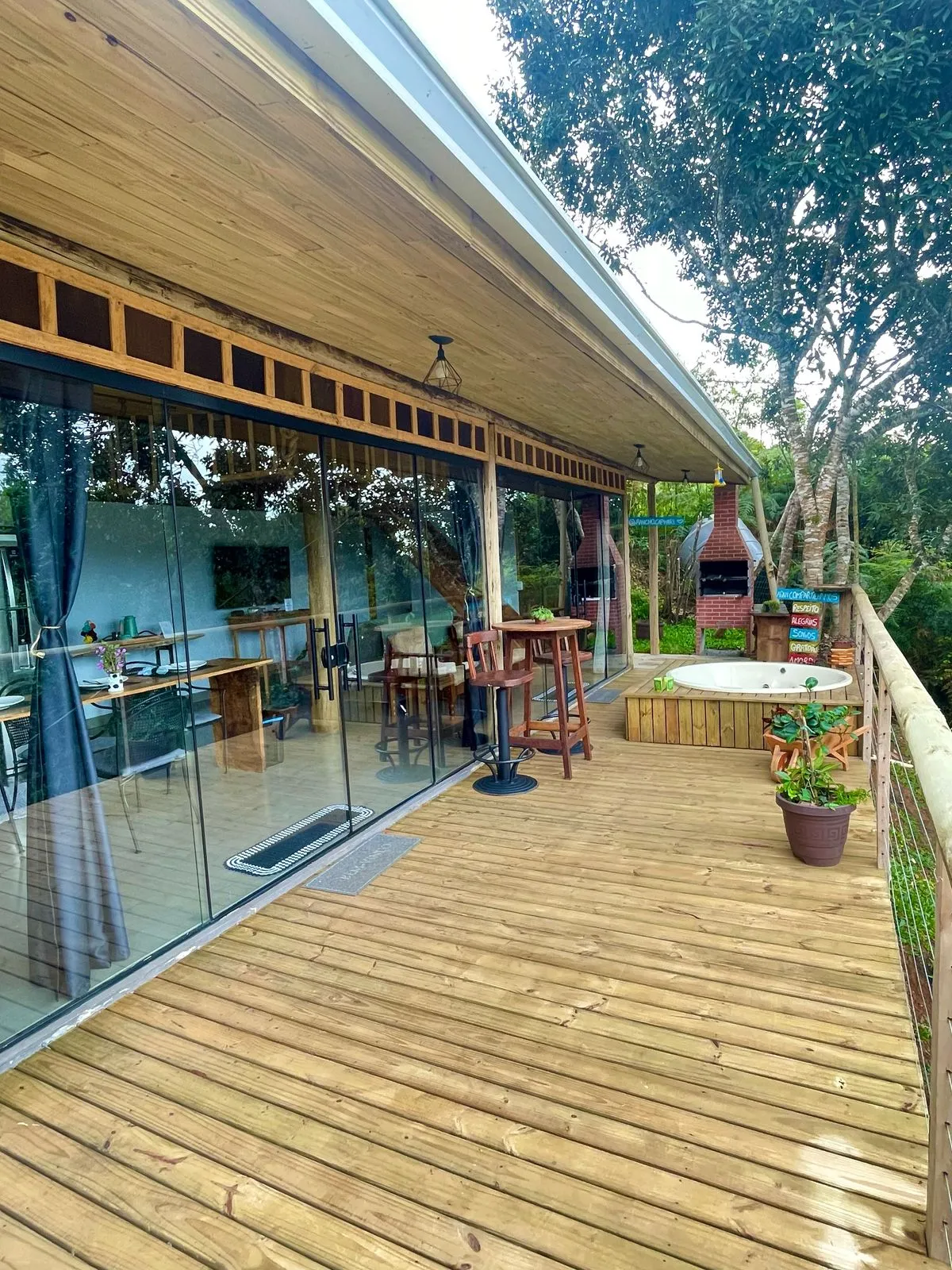 A acomodação oferece cozinha totalmente equipada, pensada para que cada refeição seja preparada com praticidade e conforto. Conta com variados tipos de panelas, frigideiras, travessas e vasilhas, além de itens especiais como panela de pressão, panela de fondue e churrasqueira. Para quem prefere trazer pratos prontos, há forno disponível para aquecer. Também existe a comodidade de solicitar entregas de pizzarias e hamburguerias da região, que atendem o condomínio com facilidade.