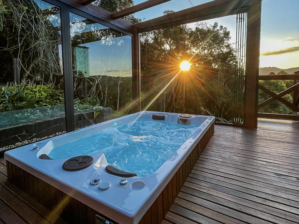 Ar condicionado Secador de cabelo TV a cabo / Smart TV Jacuzzi / Ofurô / Banheira Coberta Frigobar Lareira Máquina de Café Enxoval de Luxo (+ Roupão e Pantufa) Sauna Cozinha Estação de trabalho (mesa e cadeira) Piscina Aquecida ou climatizada Borda Infinita Coberta