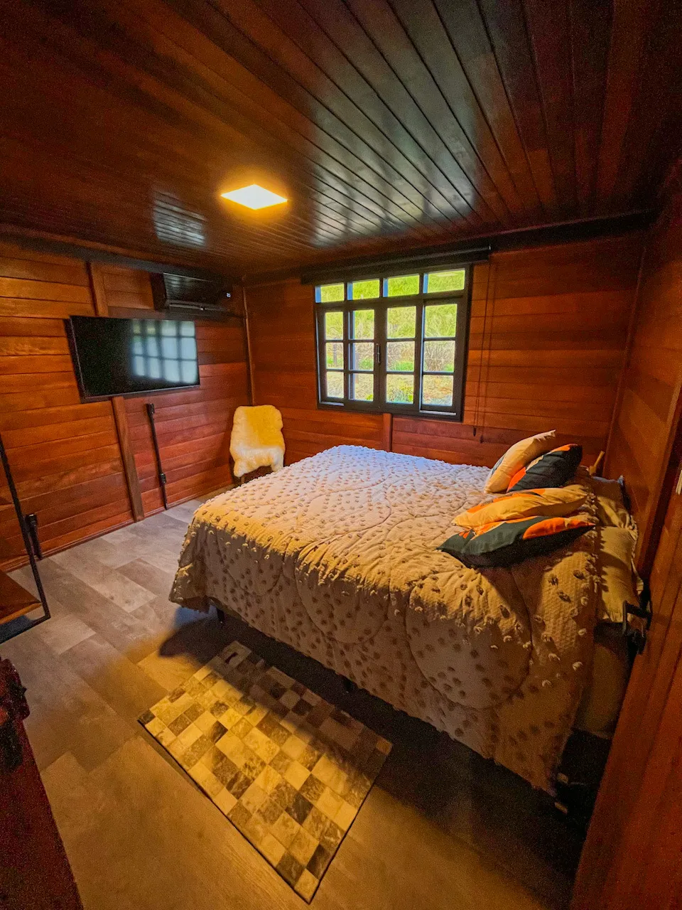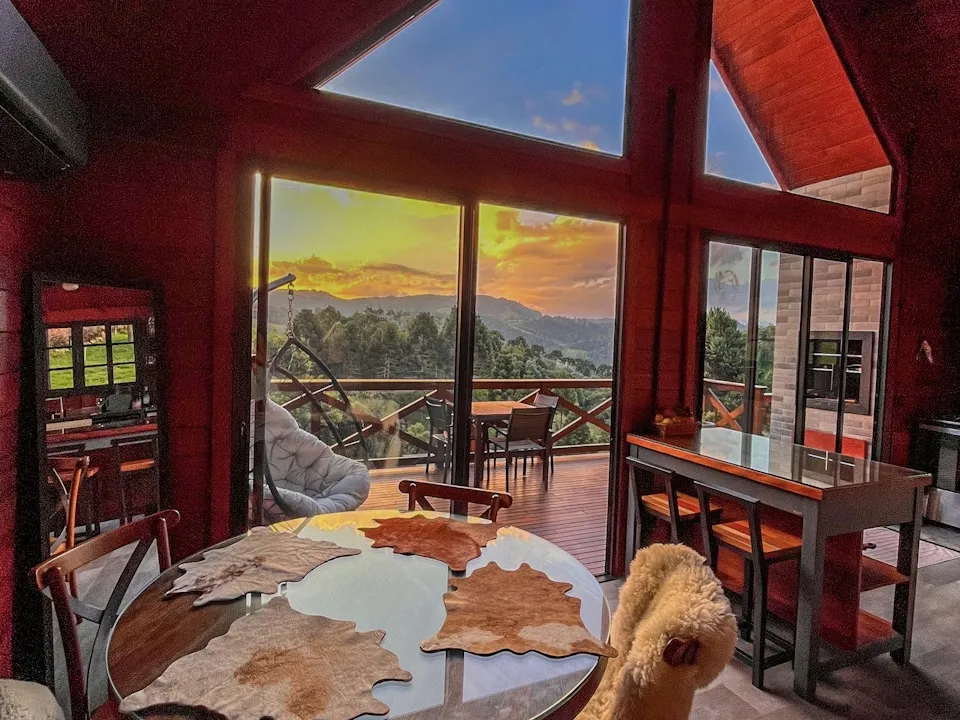 O interior foi pensado para garantir o máximo conforto. Sala de estar com sofá estiloso, TV Smart 55”, sistema de som Alexa e persianas elétricas. A cozinha, totalmente equipada, permite preparar refeições enquanto se aprecia a vista das montanhas. Os quartos oferecem camas Queen de alto padrão, roupas de cama 300 fios, TV Smart e persianas blackout. No banheiro, secador profissional e amenities Granado proporcionam um cuidado especial. Um refúgio ideal para quem busca privacidade, conforto e conexão com a natureza, seja em casal, família ou com pets.