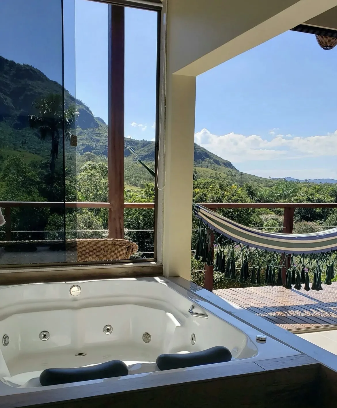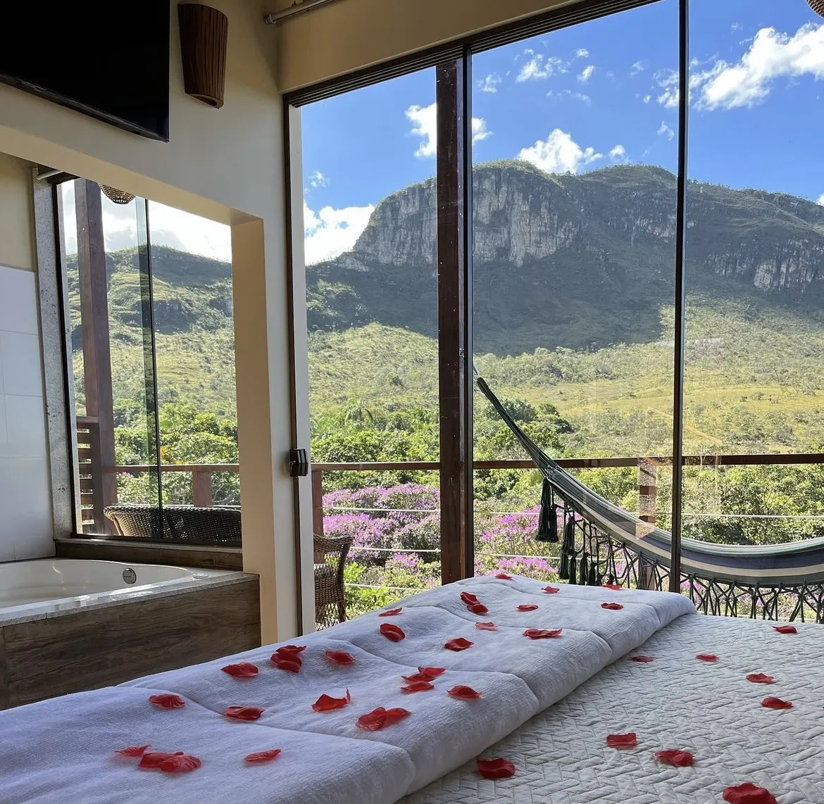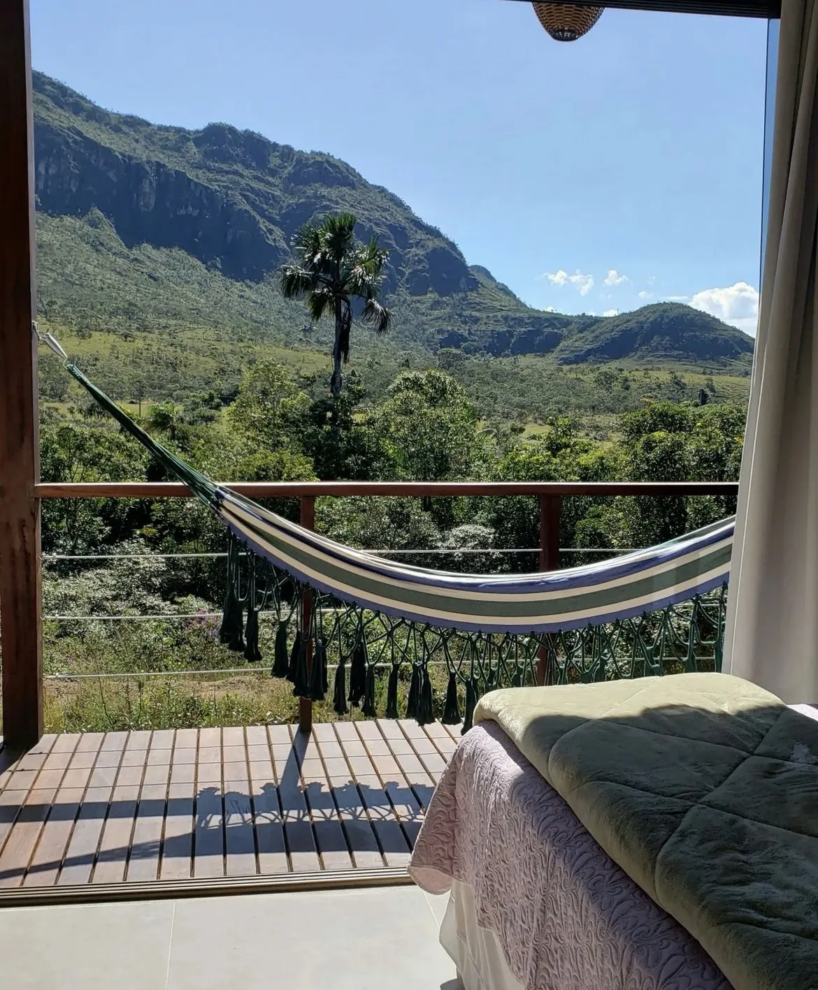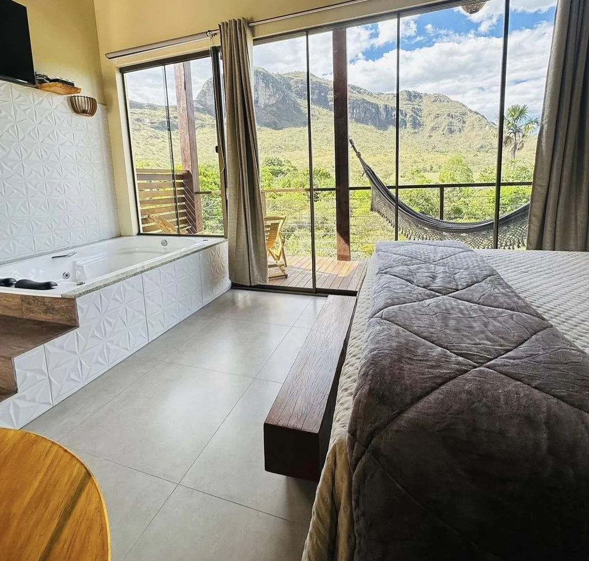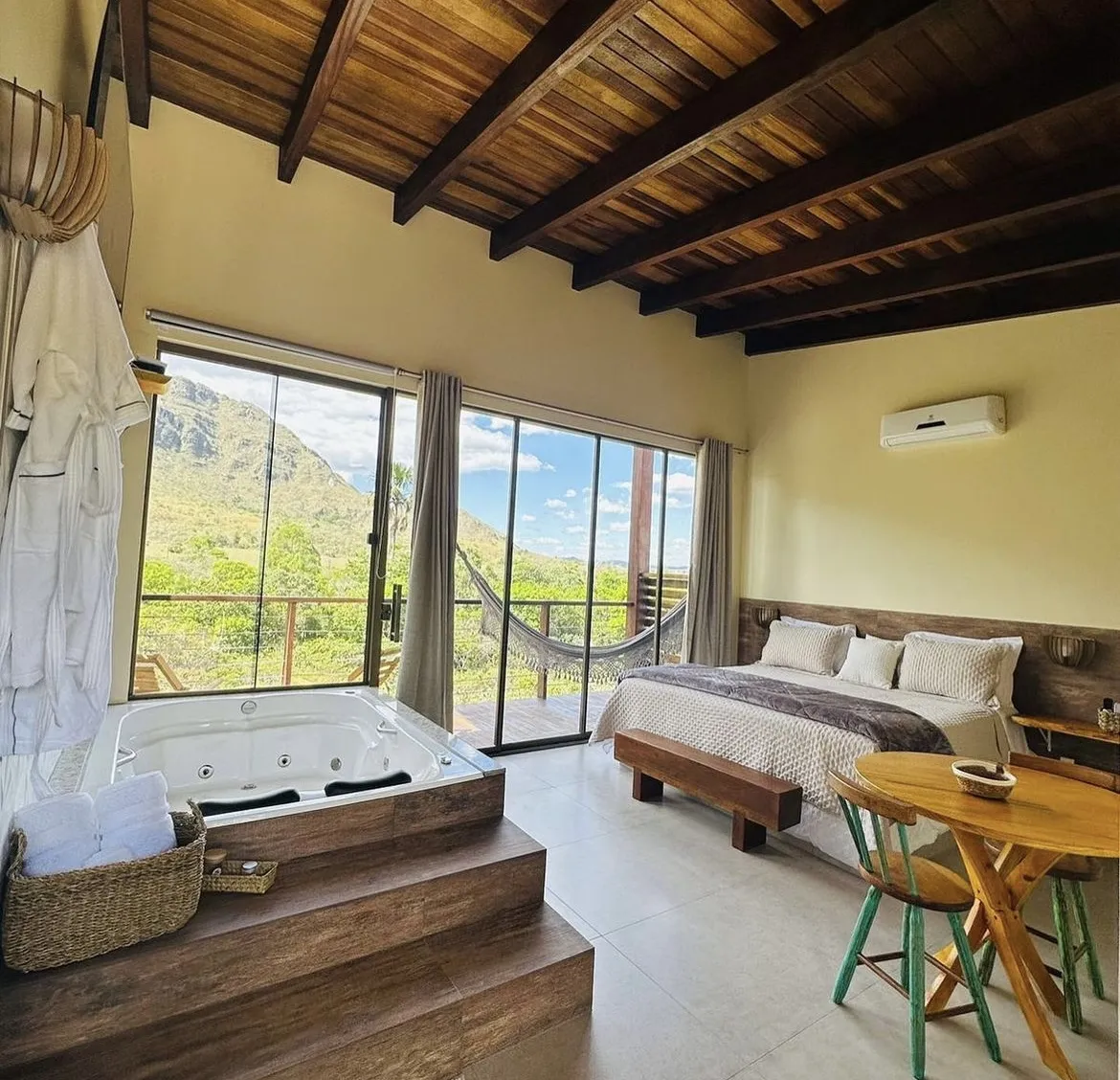 A Pousada conta com 4 (quatro) suítes localizadas na casa principal, sendo 2 (duas) com vista para o sagrado Morro da Baleia. As opções de chalés, além da vista privilegiada, são equipadas com ar-condicionado e oferecem maior privacidade. Por fim, as opções mais luxuosas são os Bangalôs, amplos, com banheiras de hidromassagem, opções de roupão e diversas outras amenidades, além da melhor vista na região da Chapada dos Veadeiros. São acomodações sustentáveis, que mesclam a beleza da Chapada com o conforto que os dias de descanso pedem! Os bangalôs são uma experiência verdadeiramente única!