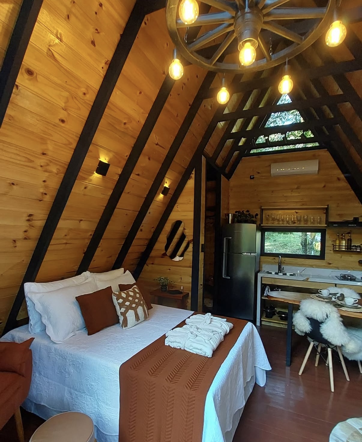 O Refúgio da Nascente é um convite para quem deseja se desligar da rotina e se conectar com o essencial. Cercada por árvores e acolhida pela natureza, a cabana se apresenta como um verdadeiro refúgio, oferecendo tranquilidade, privacidade e um cenário único para respirar fundo e simplesmente estar. Cada detalhe foi pensado para criar um ambiente que une aconchego e contato direto com o verde, perfeito para desacelerar e viver momentos de paz.