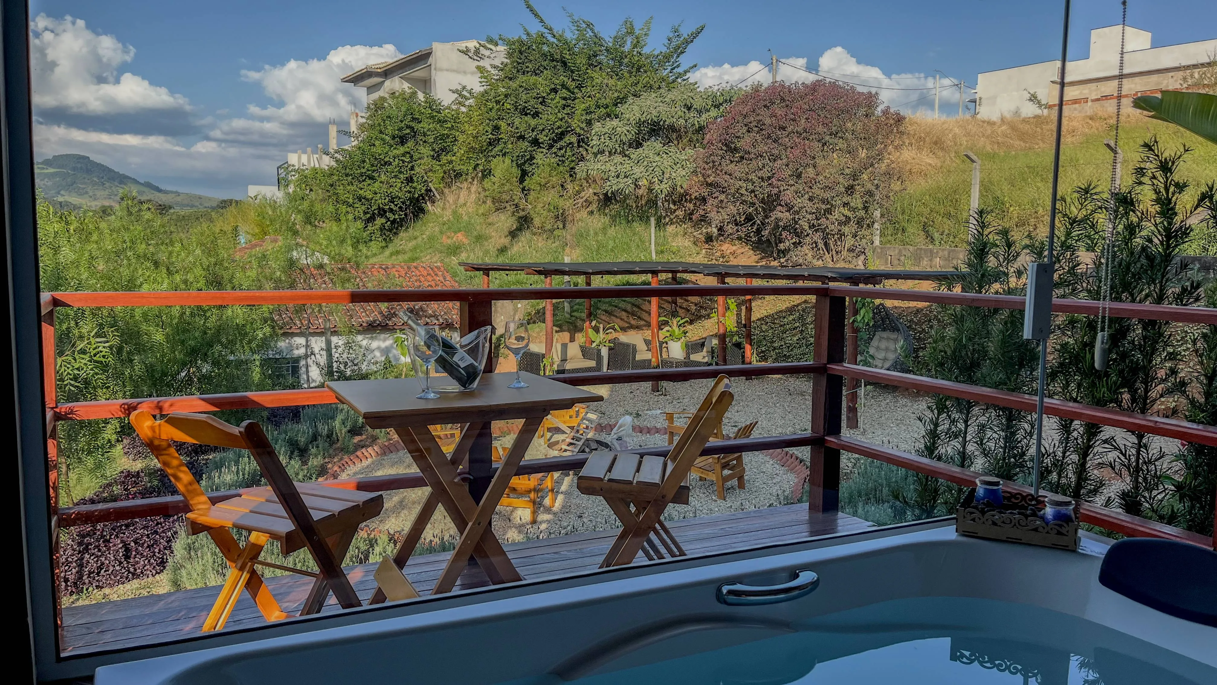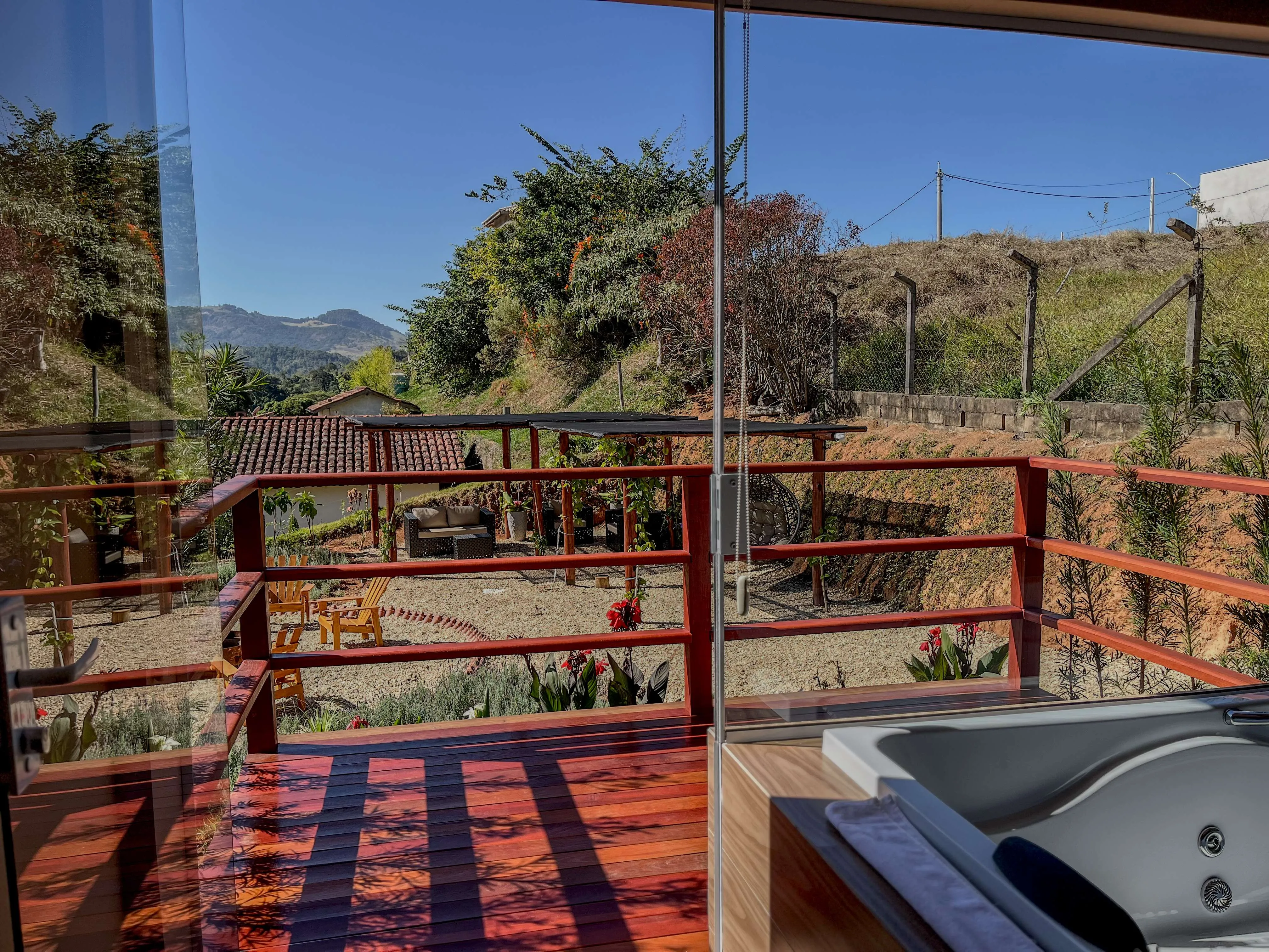Suítes com hidromassagem, rodeadas por jardins de lavandas, proporcionam um ambiente perfeito para relaxamento e bem-estar. Acomodação ideal para quem busca tranquilidade, com vistas deslumbrantes das montanhas e conexão direta com a natureza. Um refúgio encantador, perfeito para quem deseja momentos de paz e conforto.
