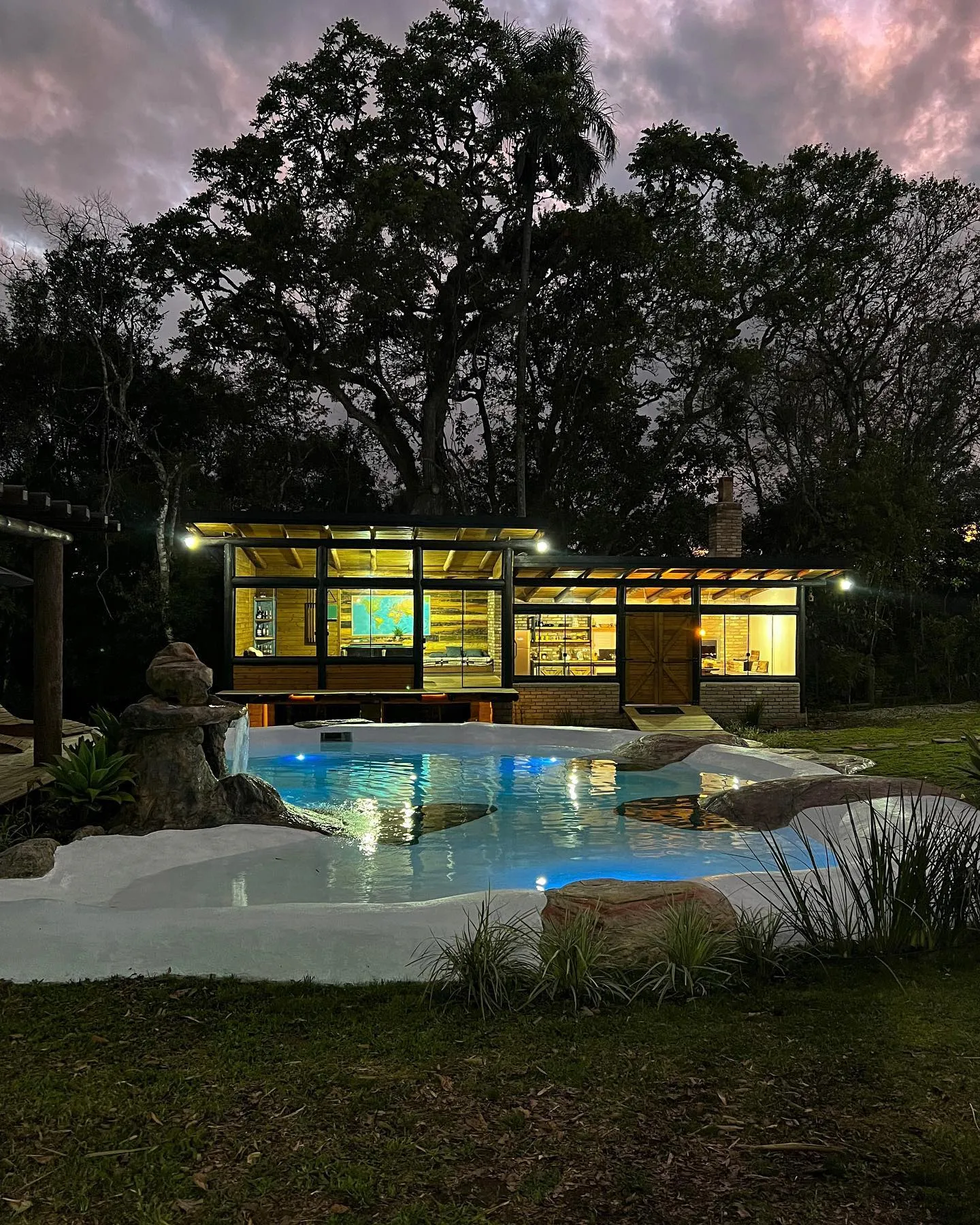 Está locaram zona rural de Morro redondo - RS. Todo ambiente é de uso exclusivo dos hóspedes. Conta com lareira, banheira de hidromassagem com cromoterapia, chuveiro a gás, ar condicionado, smart TV de 65 polegadas com acesso ao Netflix, área gourmet completa com churrasqueira e uma sala de jogos com mesa multifuncional de sinuca e ping-pong. Na ampla área externa conta com balanço e FirePit, perfeito lata ascender ao fim de tarde, também podem aproveitar a piscina estilo lago natural.