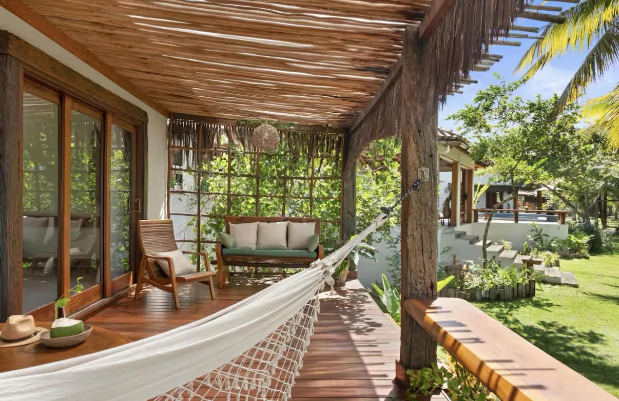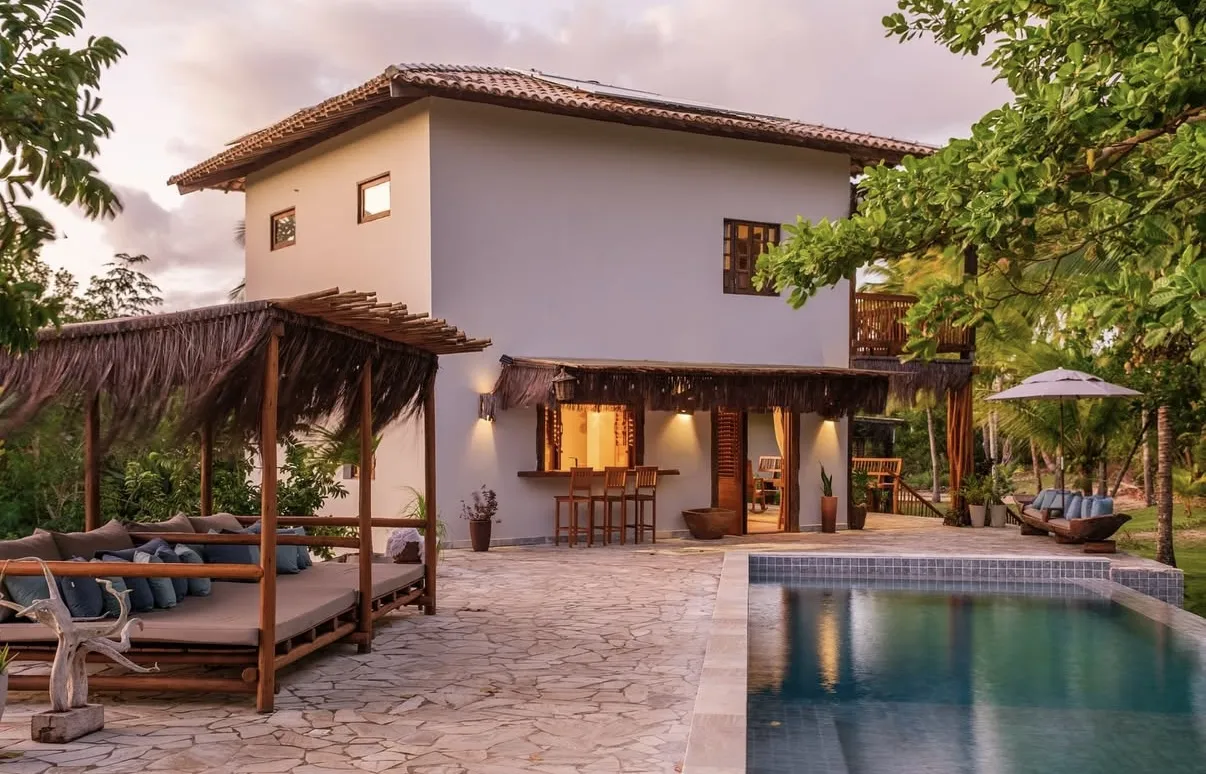 A Reserva Pratigi oferece um refúgio exclusivo à beira-mar, com capacidade para acomodar até 22 pessoas em meio a um cenário paradisíaco. O espaço conta com piscina sombreada por cajueiro e coqueiros, quadra de vôlei e beach tennis, além de mais de 500 metros de praia preservada. O ambiente combina conforto e contato direto com a natureza, ideal para momentos de lazer e descanso.